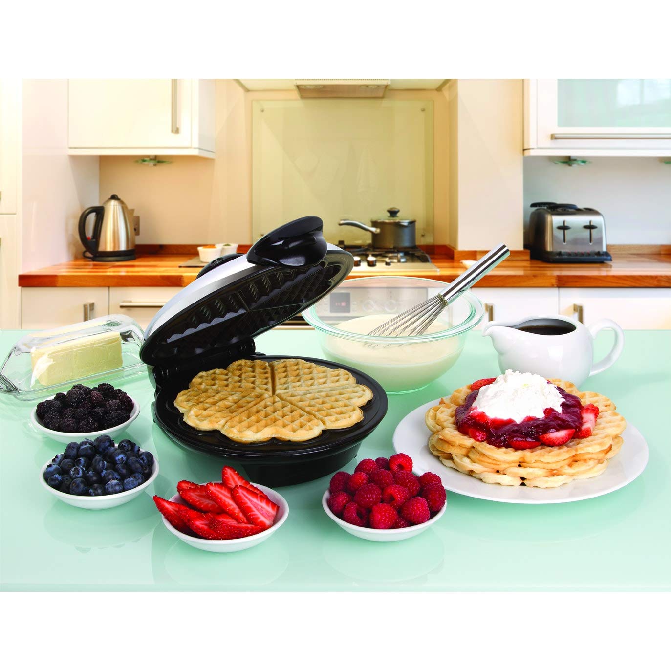 Chrome Metallic Heart-Shaped Waffle Maker, Unique Black Heart Shaped Non Stick Surface Cooking Appliance