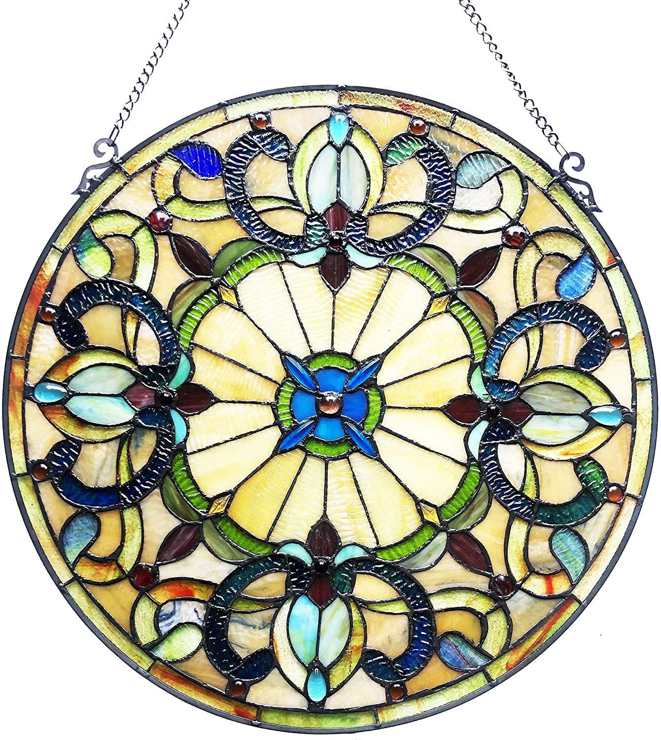 Circular Glass Window Panel/suncatcher Color Traditional Round Victorian Includes Hardware