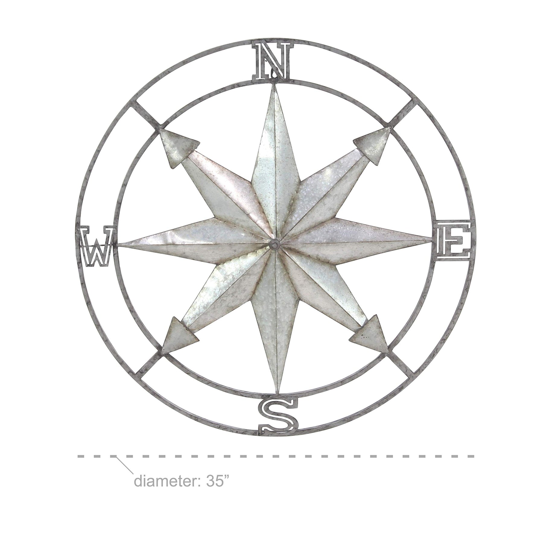 Coastal Iron Compass Art Wall Decor Silver Rustic | Style : Rustic. Material : Iron.Product Color: Silver | Dimensions : 35.0 In. X 3.0 In. X 35.0 In.