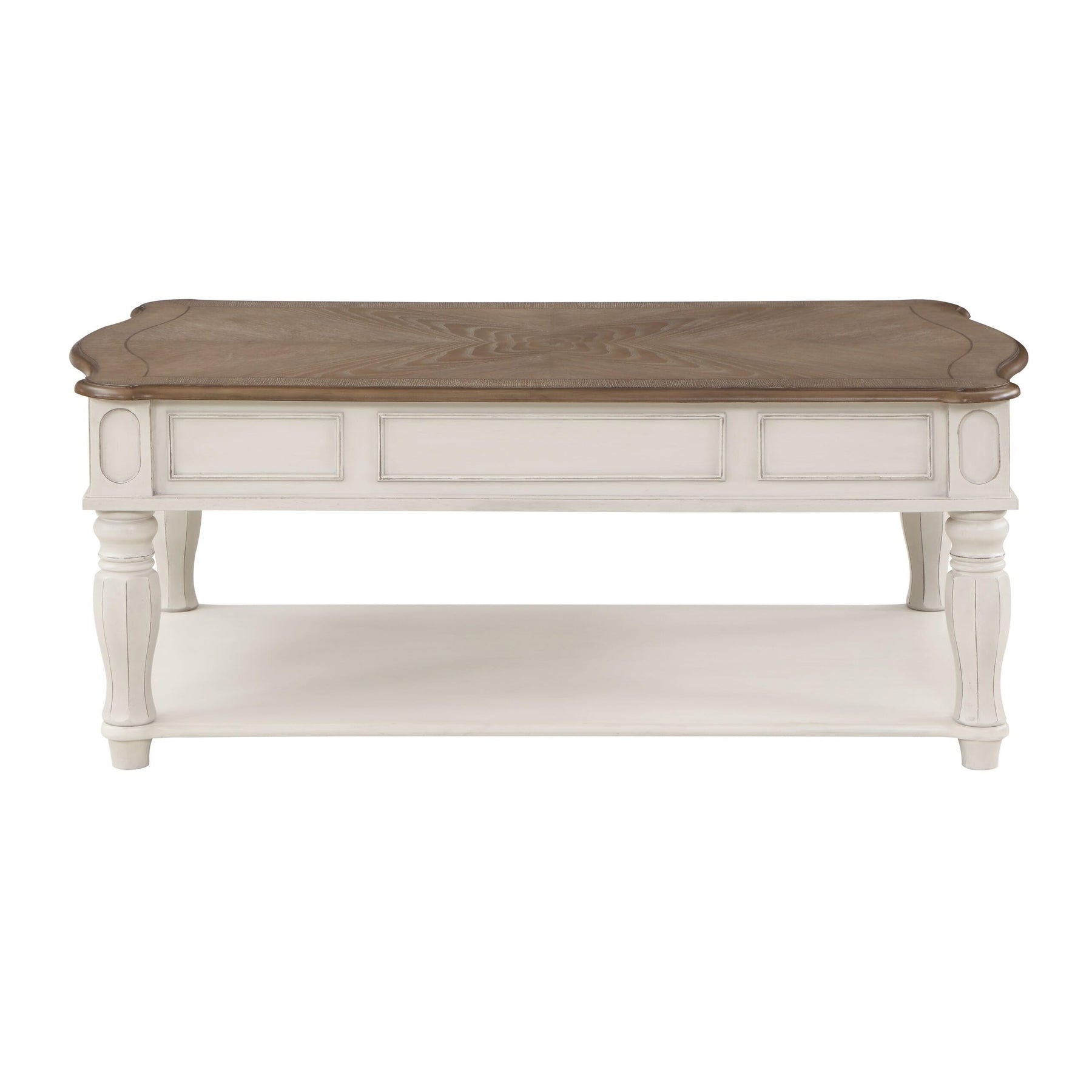 Coffee Table with Lift Top in Oak and Antique White Brown Transitional - Diamond Home USA