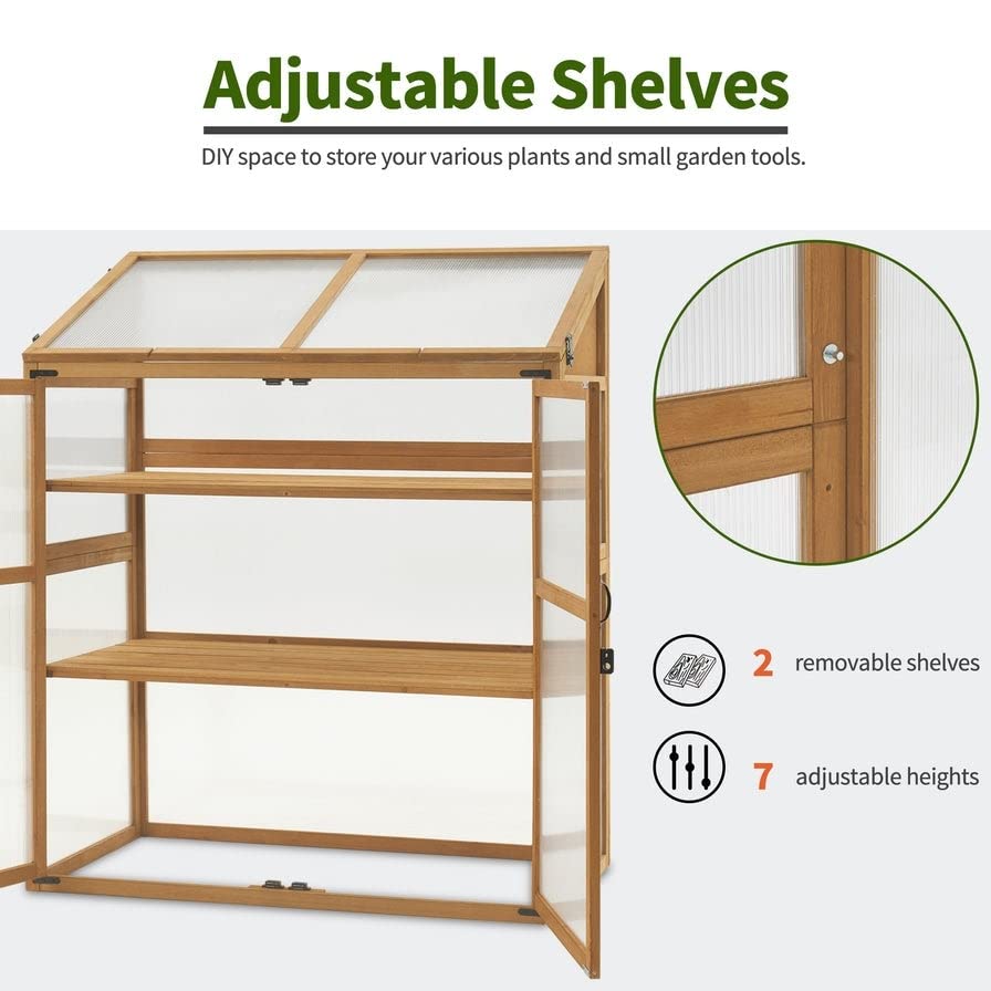 Cold Frame Large Wooden Greenhouse Cabinet Garden with Adjustable Natural
