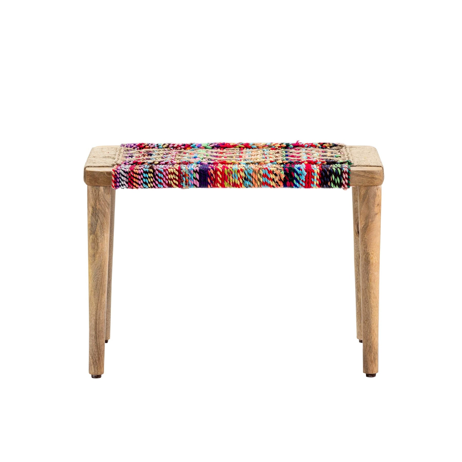 Colorful Woven Bench Multi Color Abstract Bohemian Eclectic Pattern Wood