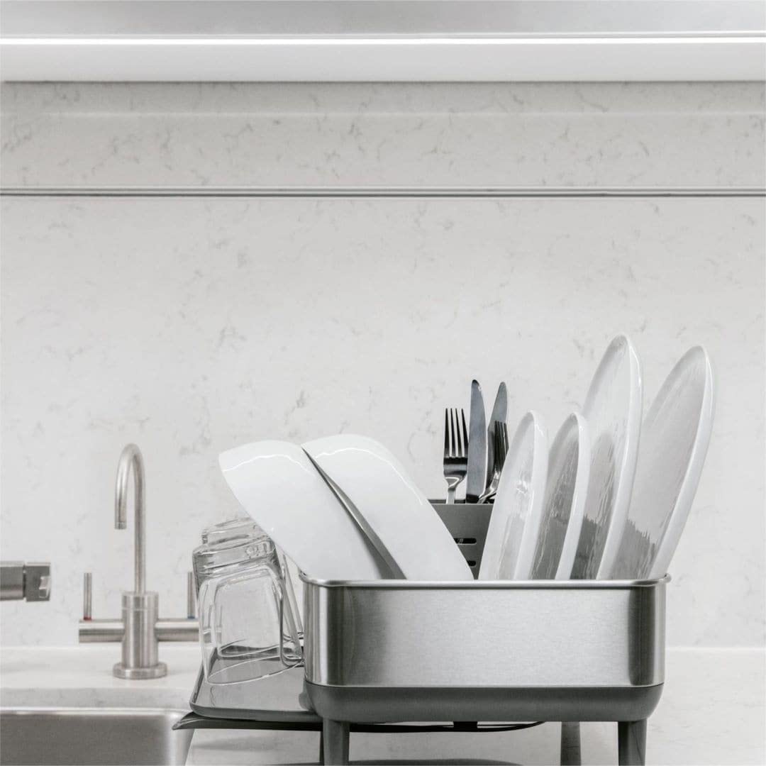 Compact Kitchen Dish Drying Rack Fingerprint-Proof Stainless Steel Frame Grey
