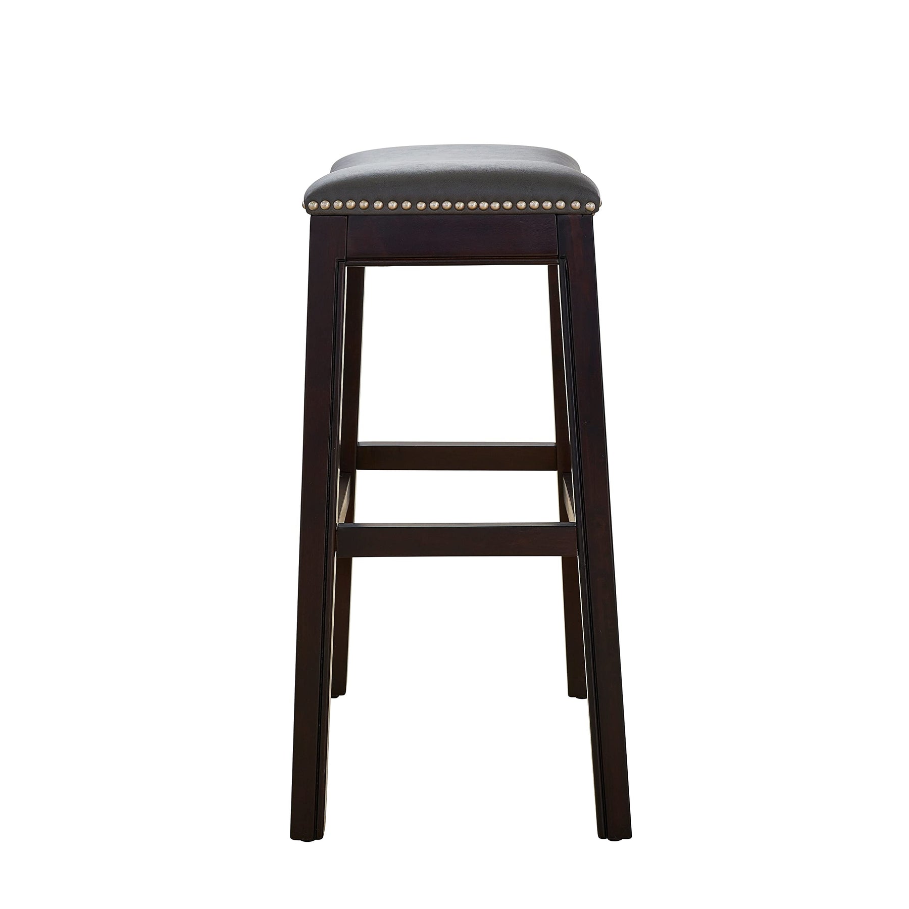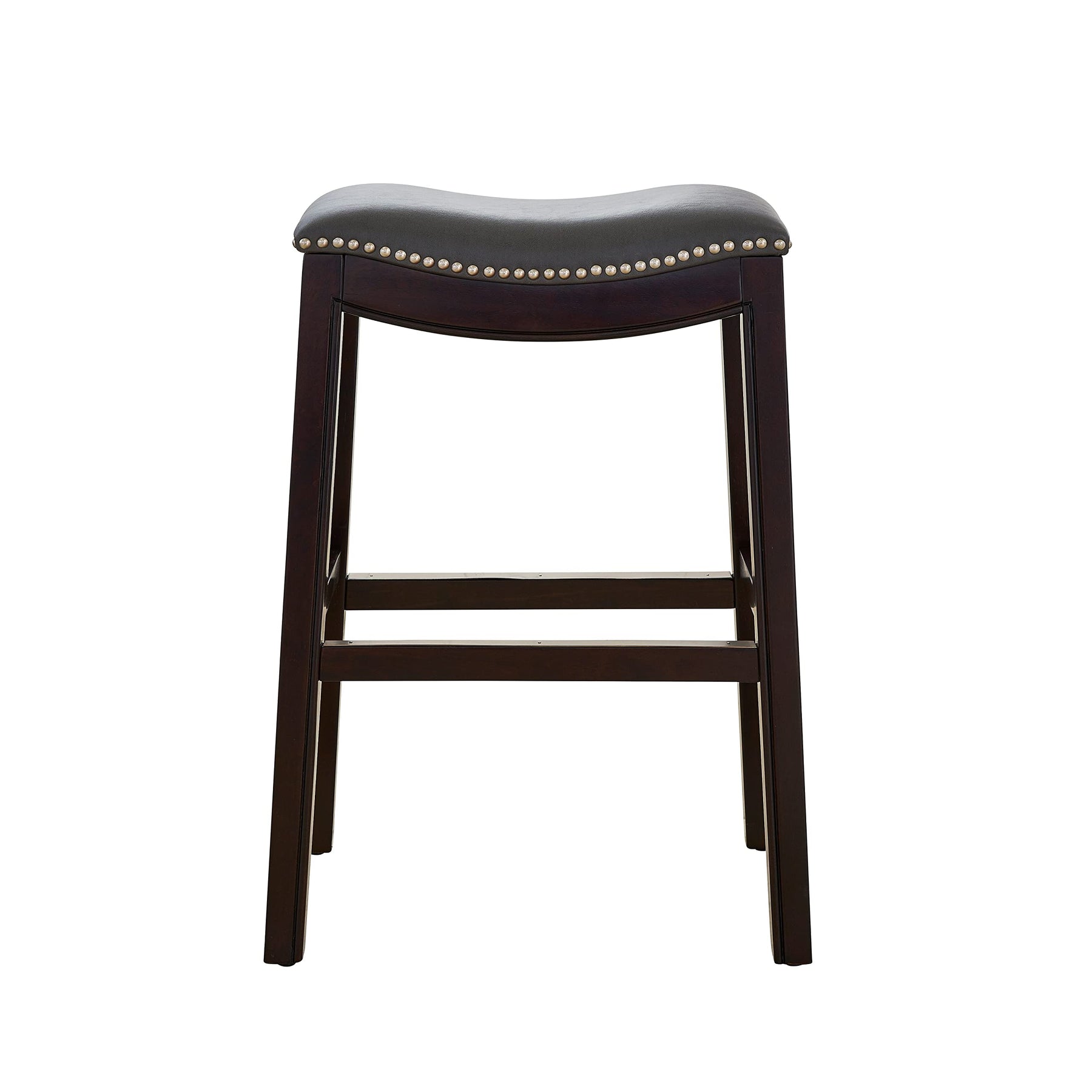 Counter Height Barstool with Grey Leather Seat Brown Modern Contemporary