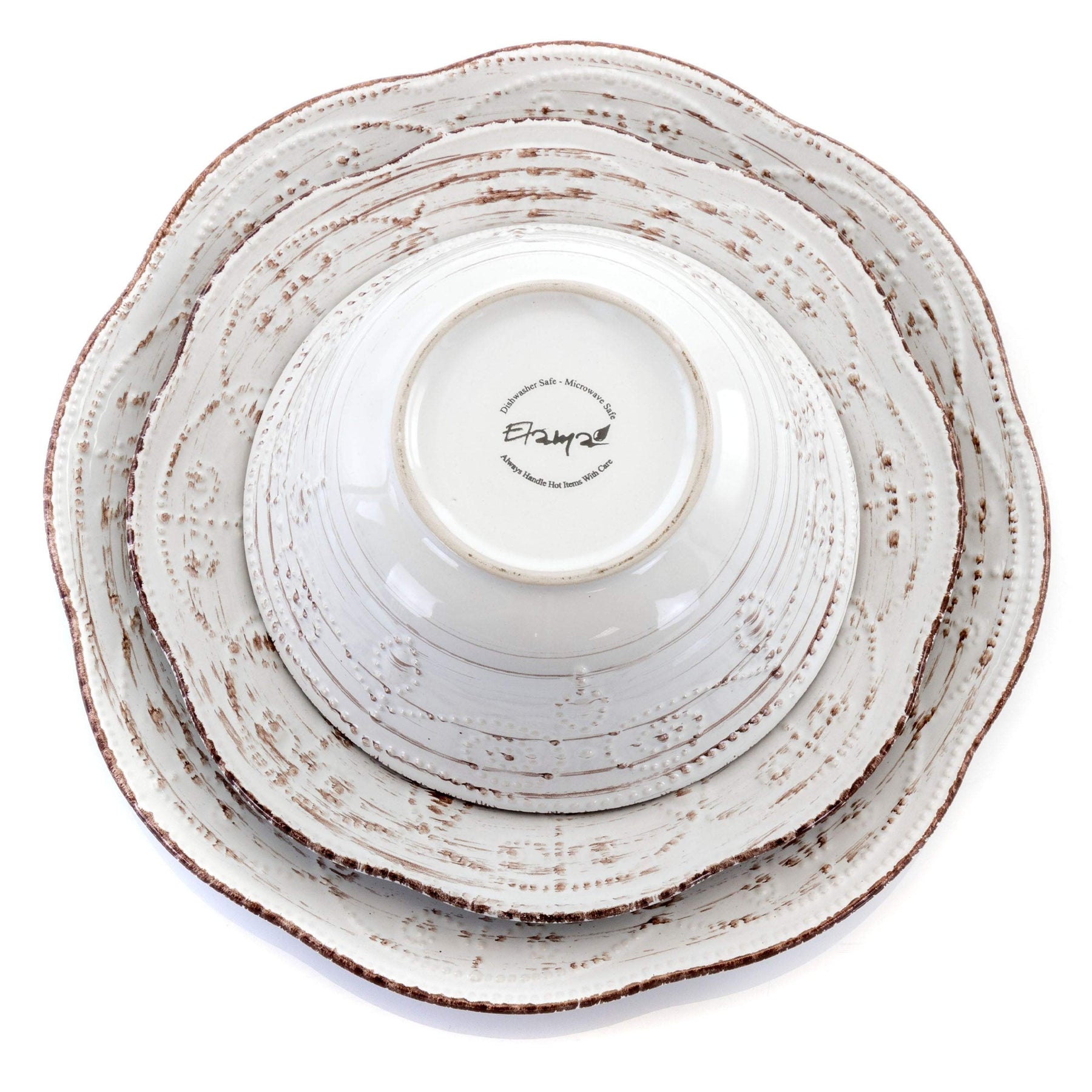 Country Birch 16 Piece Stoneware Round Dinnerware Set off/white Textured
