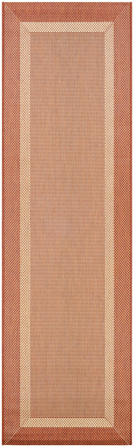 The Couristan Recife Stria Texture Indoor/Outdoor Area Rug in Natural-Terracotta is a perfect blend of style, durability, and convenience. Power-loomed of 100% fiber-enhanced Courtron polypropylene, this rug is designed to withstand the elements, making it ideal for both indoor and outdoor use. Its unique color combinations have been carefully selected to complement today's hottest outdoor home furnishings. The rug's structured, flatwoven construction ensures a smooth surface that's easy to clean - simply sweep, vacuum, or hose as needed. Despite its toughness, this rug doesn't compromise on style. Its transitional pattern and solid color make it a versatile addition to any space. Please note, while this rug is suitable for outdoor/indoor use, it is recommended to store it indoors during severe or prolonged weather conditions.