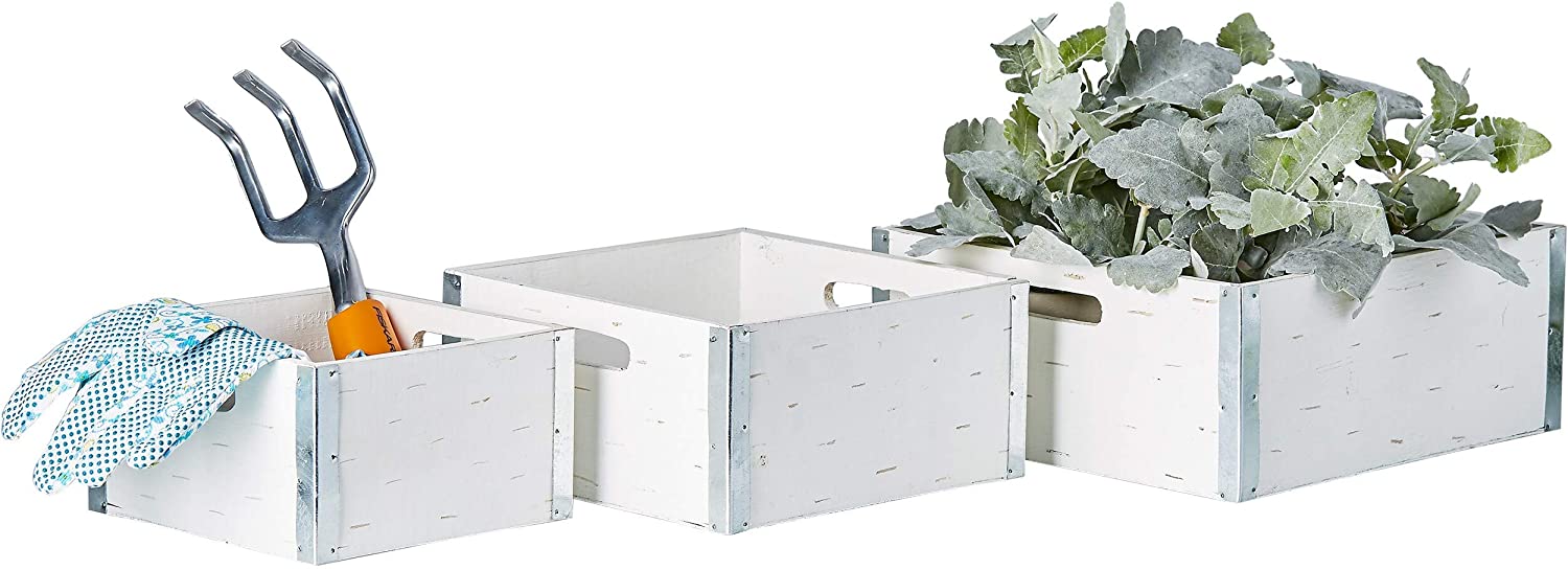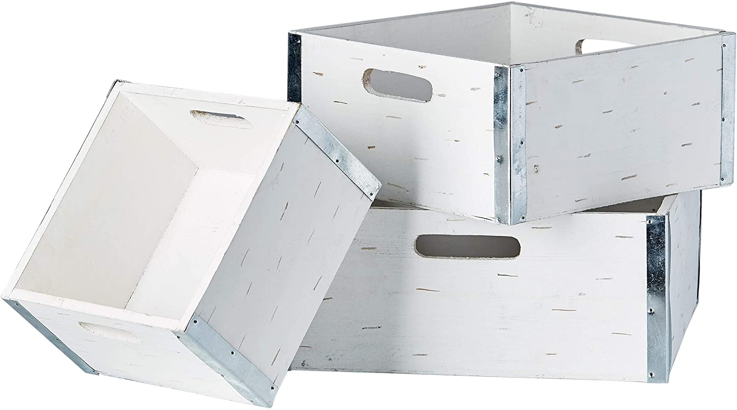 Different Sized Wooden Crate Set 3 White Ivory Off/White Metal