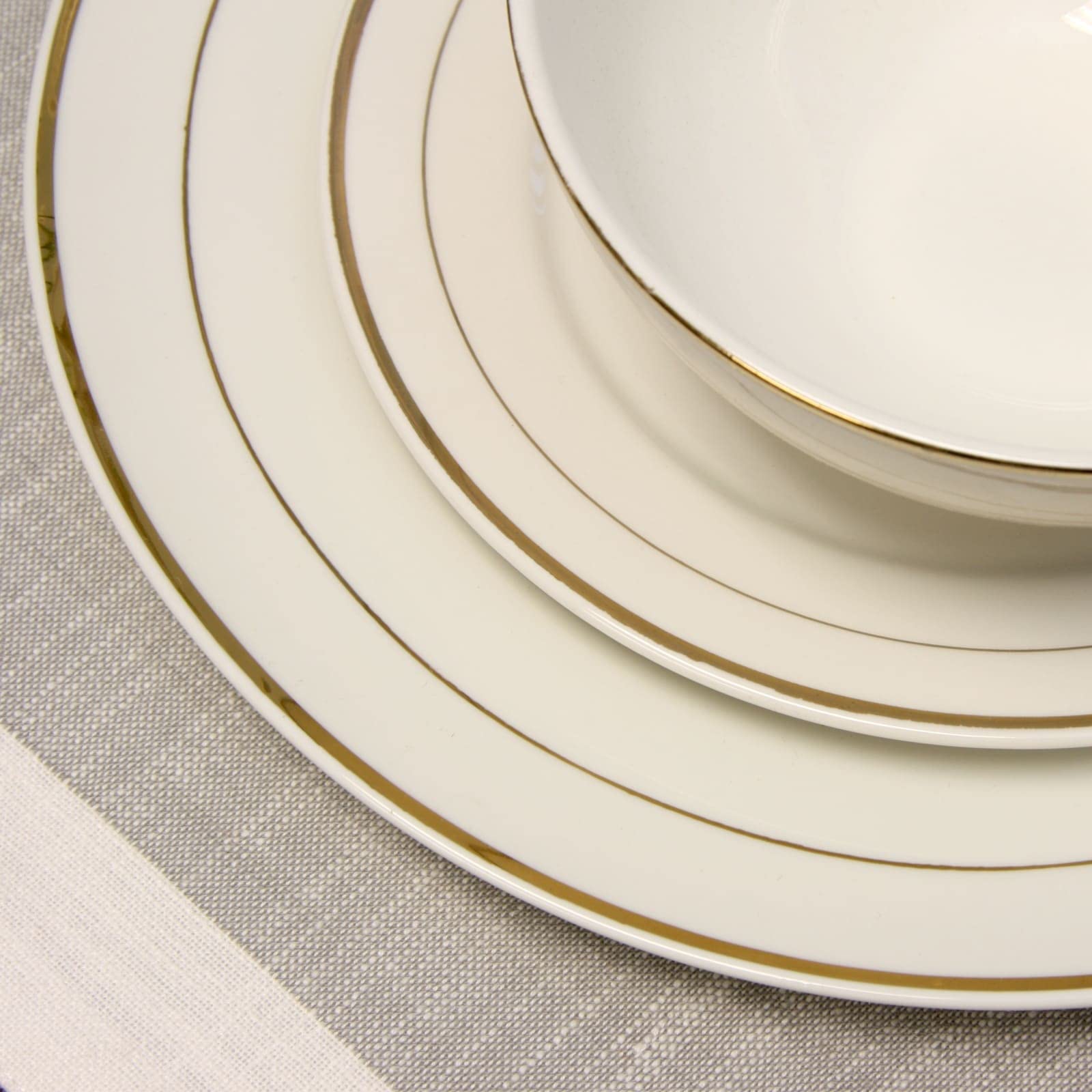 Dinnerware Double Gold Ring Set 16 Pieces White Solid Casual