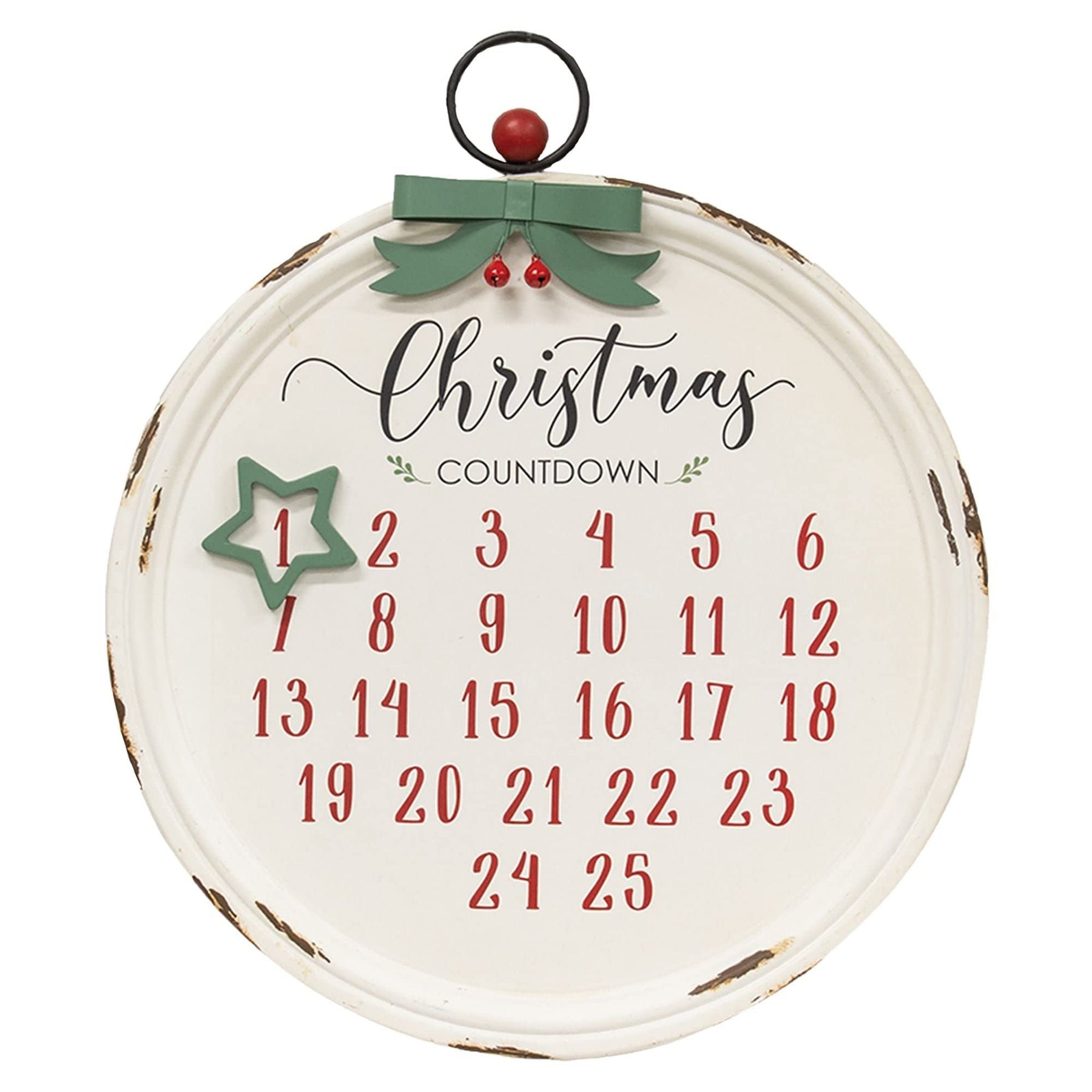 Distressed Christmas Bulb Countdown Calendar W/star Magnet White Metal