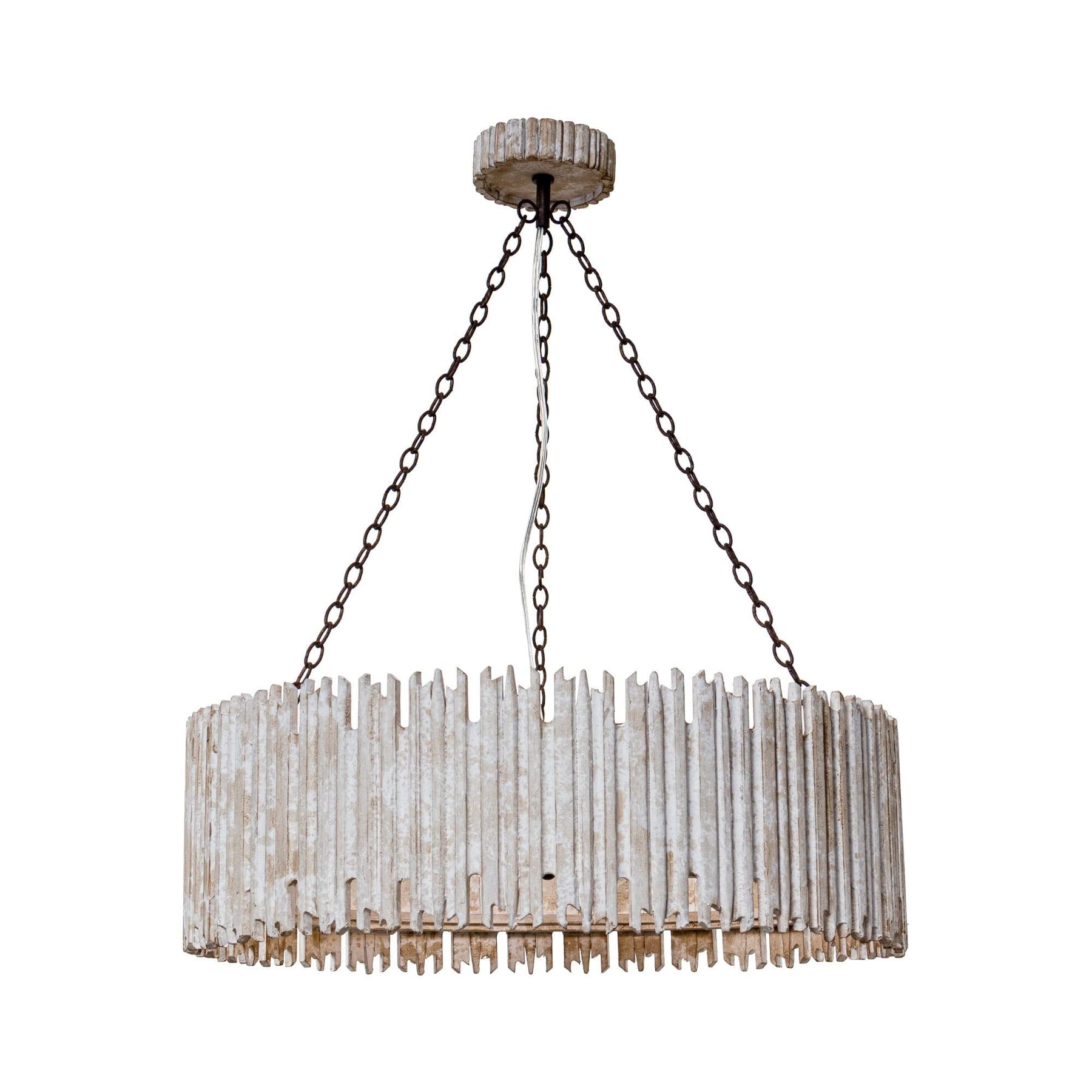 Distressed White 3-light Wooden Drum Chandelier Farmhouse Metal Wood Dimmable - Diamond Home USA