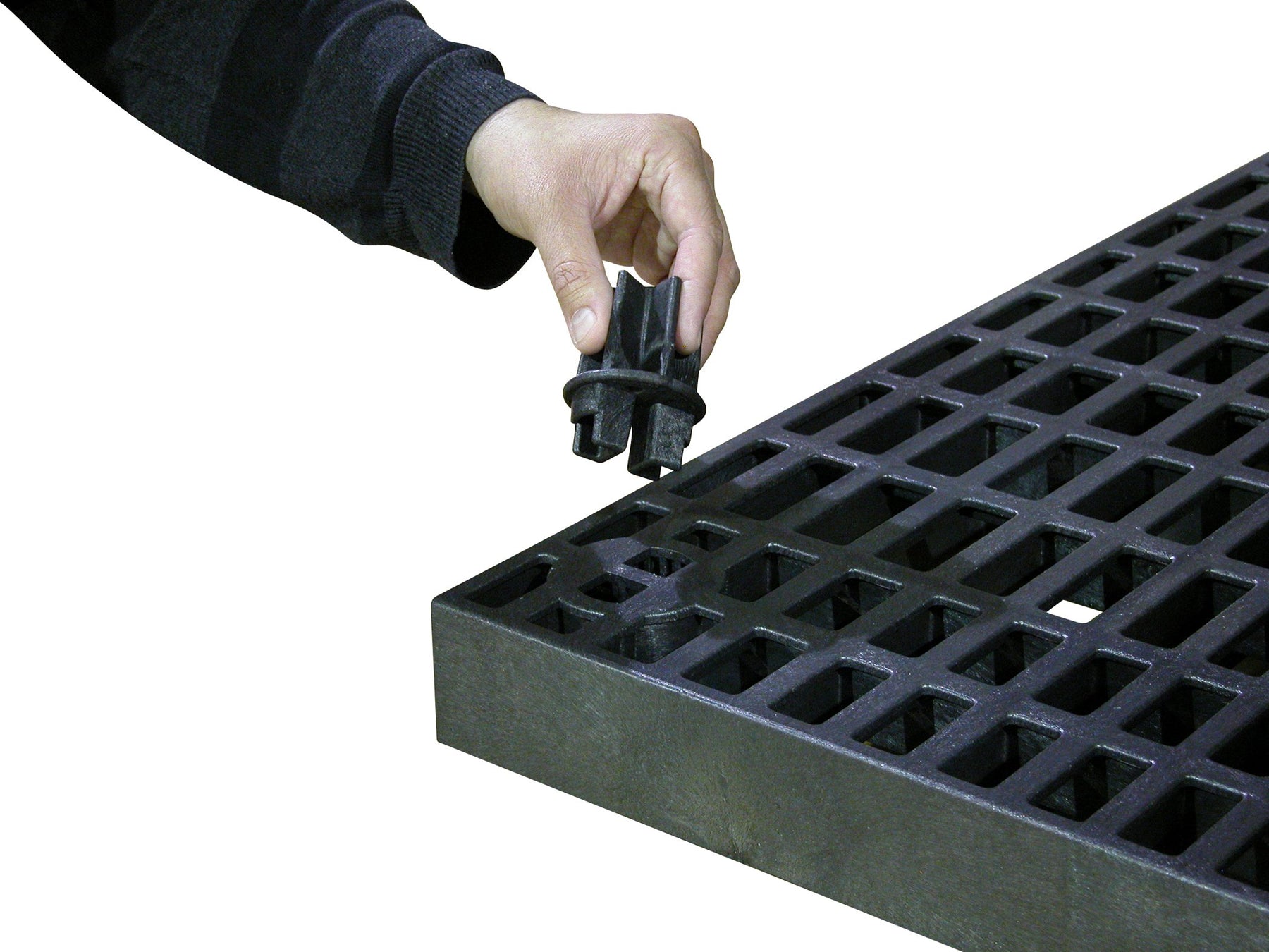 Line your storage room with this easy-to-assemble STRUCTURAL PLASTICS Dura-Shelf Shelving. To assemble simply snap leg collars into open grid shelving. Heavy-duty plastic construction supports bulky items like paper boxes and toner cartridges. 24"H legs. Lightweight, non-corrosive.