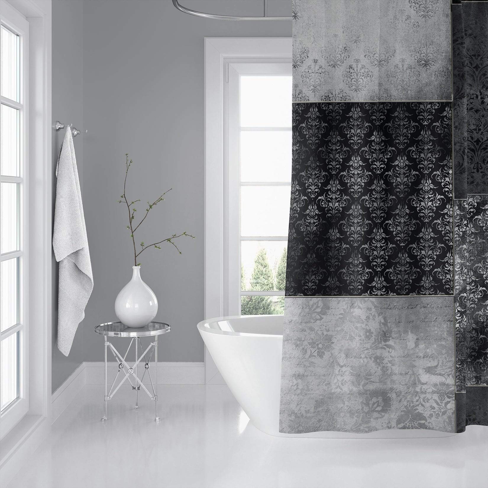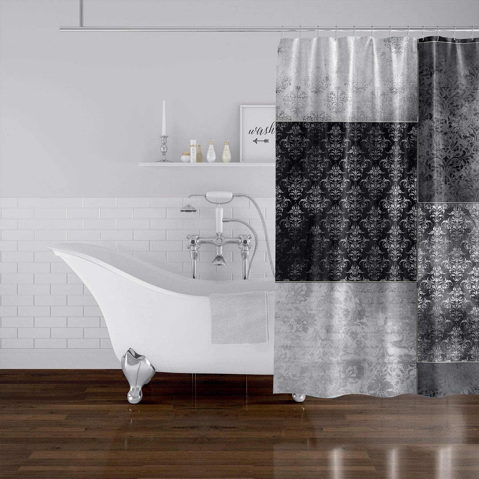Eclectic ohemian Patchwork Dark Grey Shower Curtain by - 71x74