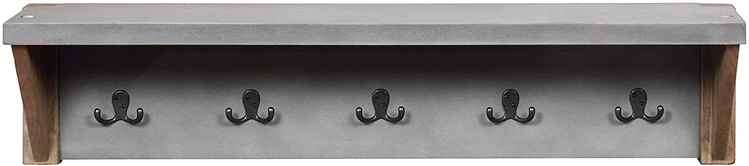 • Coat Hook: 40"W x 9"D x 9"H. Faux gray concrete with light amber wood trim creates a modern mix. Distance between center of each hook: 7 1/4". Hang coat hook using French cleat; remove the cleat from the hook prior to hanging. Pair with matching bench or coordinating rush bench. Wipe clean with a soft dry cloth. Material : MDF. Accent type : Coat Racks. Assembly : Assembled. Season or holiday : All Seasons