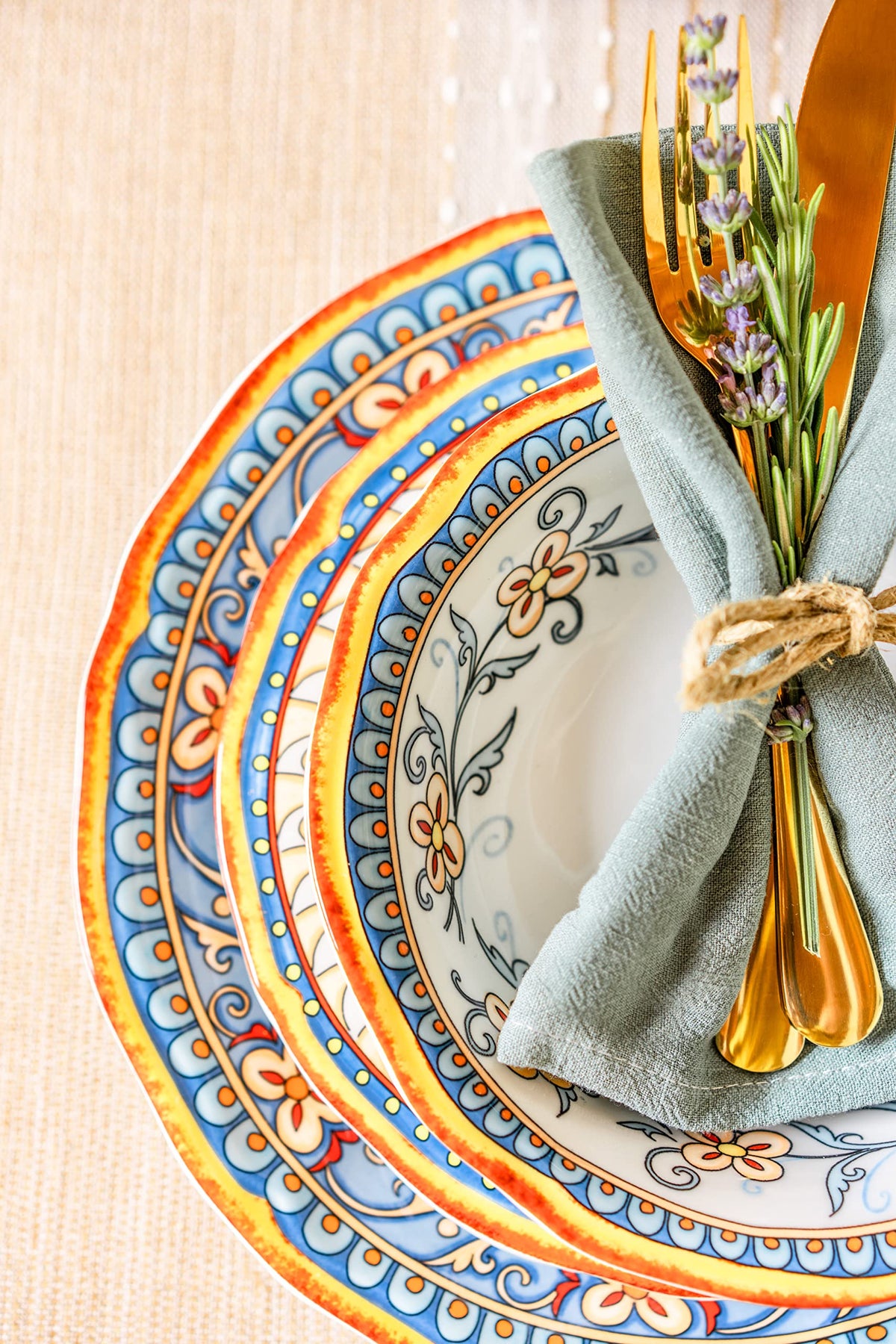 Description:Are you tired of using dull, boring, and low-class dinnerware set?Do you want to host an unforgettable and sophisticated dinner with a completely safe and practical dinnerware set?Enhance your everyday dining experience with the grace and refinement of the Italian Renaissance, conveniently recreated by the artisan design of the Duomo collection by Euro Ceramica. Now you can partake in classic Italian beauty at every meal with this timeless dinnerware. In order to build the charm and value of the Duomo collection, No detail has been overlooked and every piece is hand-crafted. We believe your home should be a collection of things you love so were here to help you bring a few more of those things to your home. We strive to help you fill your home with uniquely crafted pieces that will make your home that much more curated and your gatherings more beautiful. Unique Features: ✅Bright and Eye-Catching Color Scheme✅Decorate your Entire Kitchen: Wide Variety of Accessories Available✅Truly One-of-a-Kind Design Inspired by Personal Travels around Italy✅The perfect shade of blue paired with warm yellows in a design destined to match every home✅Casual enough for every day, but also unexpected enough to wow any guestThe 16 piece dinnerware set includes: Four dinner plates: 10. 68 x 10. 68 x 1. 22"Four salad plates: 8. 38 x 8. 38 x 0. 88"Four soup bowls: 7. 69 x 7. 69 x 1. 94", 20oz capacityFour mugs: 3. 81 x 5. 31 x 4. 25", 14oz capacity✅ Buy With Confidence! Add to cart NOW!