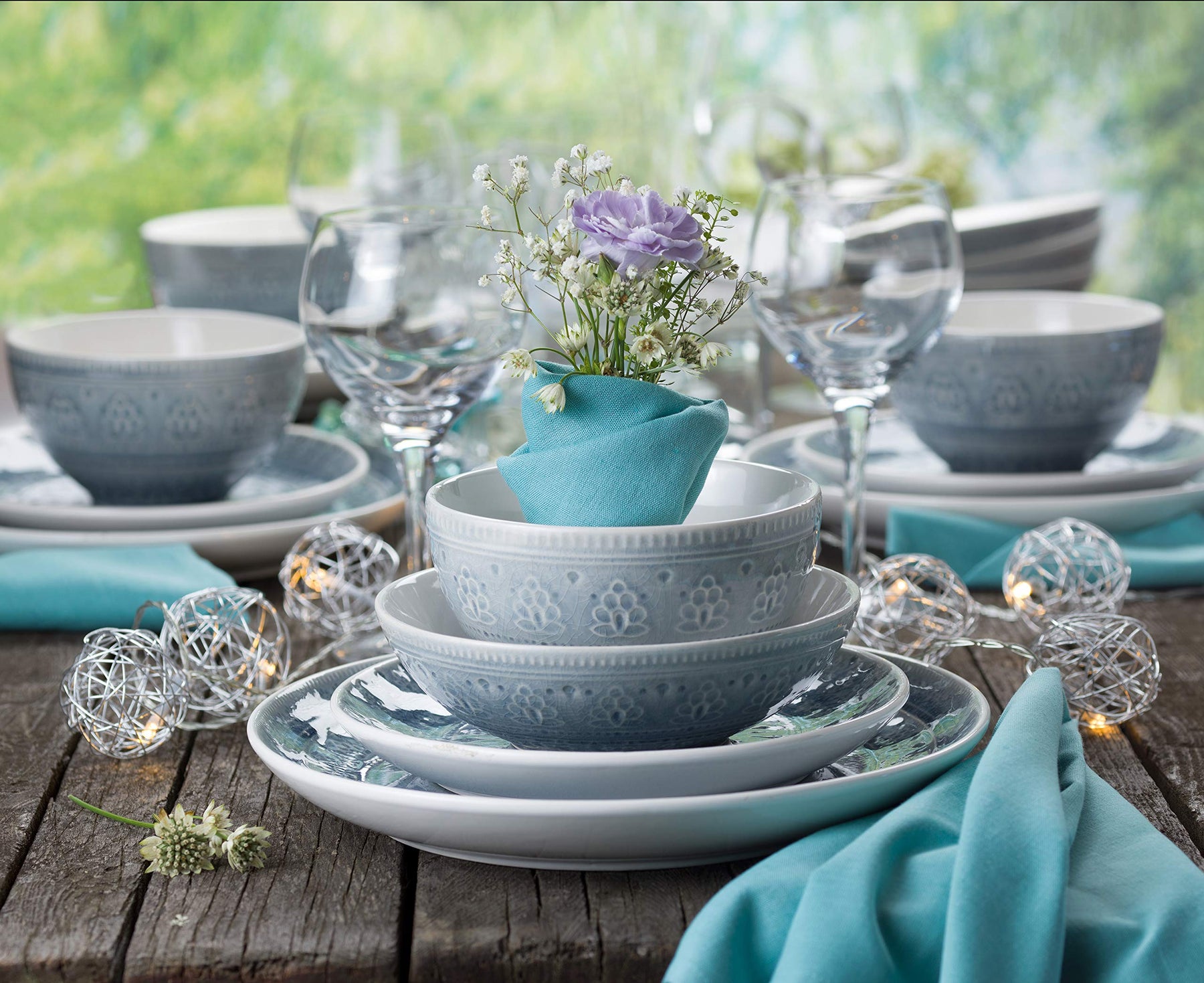 Euro Ceramica Fez 16 Piece Double Bowl Stoneware Mandala Pattern