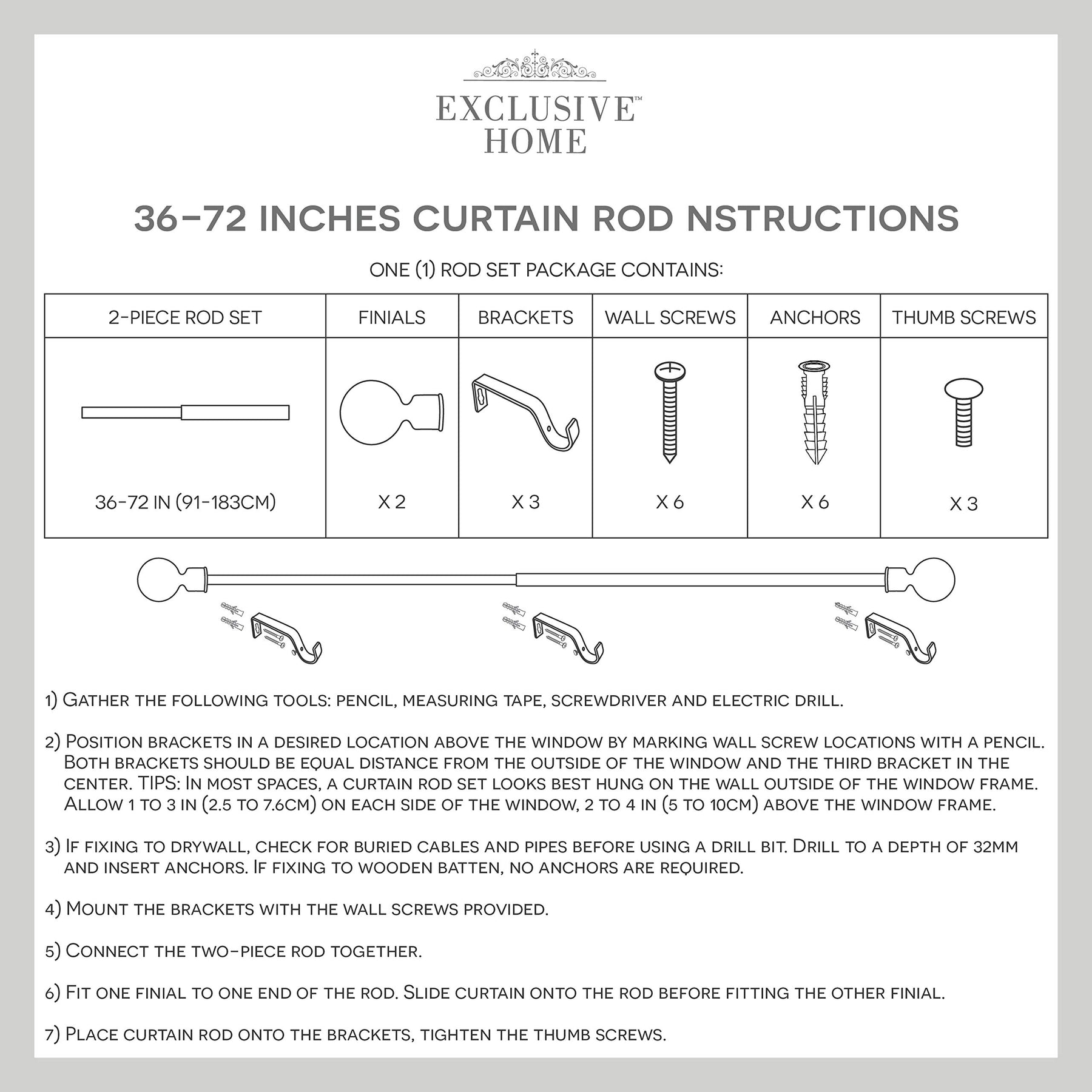 Exclusive Home Crystal Ball 1" Curtain Rod and Coordinating Finial