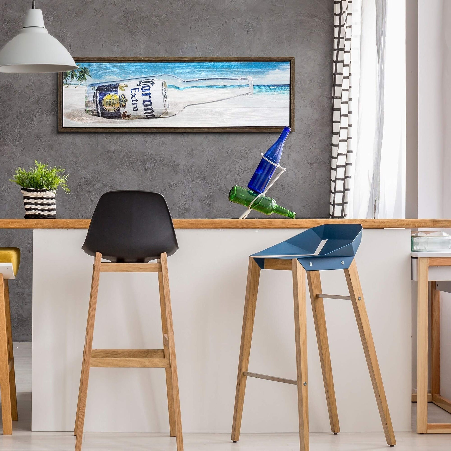 Extra Framed Canvas Wall Art Decor Blue | CORONA EXTRA BEER WALL DECOR - Find your beach and change your latitude with this Corona wall art that features a can of Corona beer trapped within a clear glass bottle. This unique print offers a bit of Photoshop magic to create a visually catchy and attractive piece of wall decor. VERSATILE - Whether for your man cave, she shack, bedroom, living room, home bar, garage or game room, this framed wall art works for a variety of rooms and decor Design/Looks. Material : Canvas | Product Size: : 37.75 In. X 1.25 In. X 12.0 In. FRAMED CANVAS WALL ART - This gallery wrapped canvas print showcases the entire print covering the canvas as well as a stylish brown frame made from medium-density fibreboard (MDF), giving it a more sophisticated and elevated look. LIGHTWEIGHT & READY TO HANG - Weighing only three pounds, this lightweight wall decor item also comes outfitted with two D-rings on the back, making installation as easy as an ocean breeze.