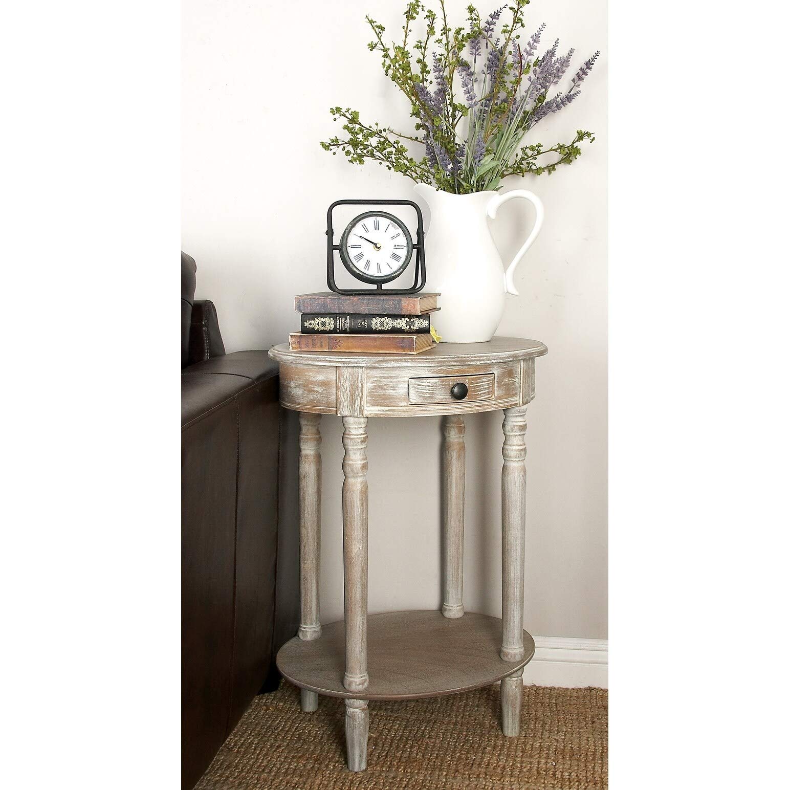 Farmhouse 27 Inch Oval Wooden Accent Table with Drawer Taupe