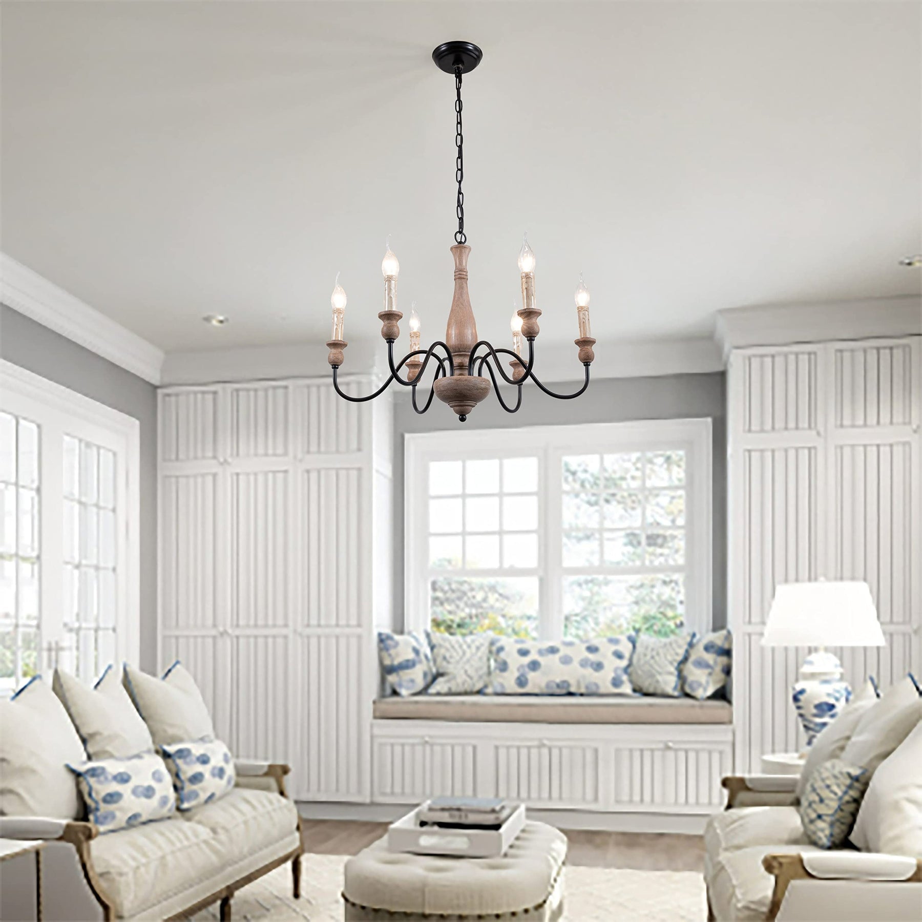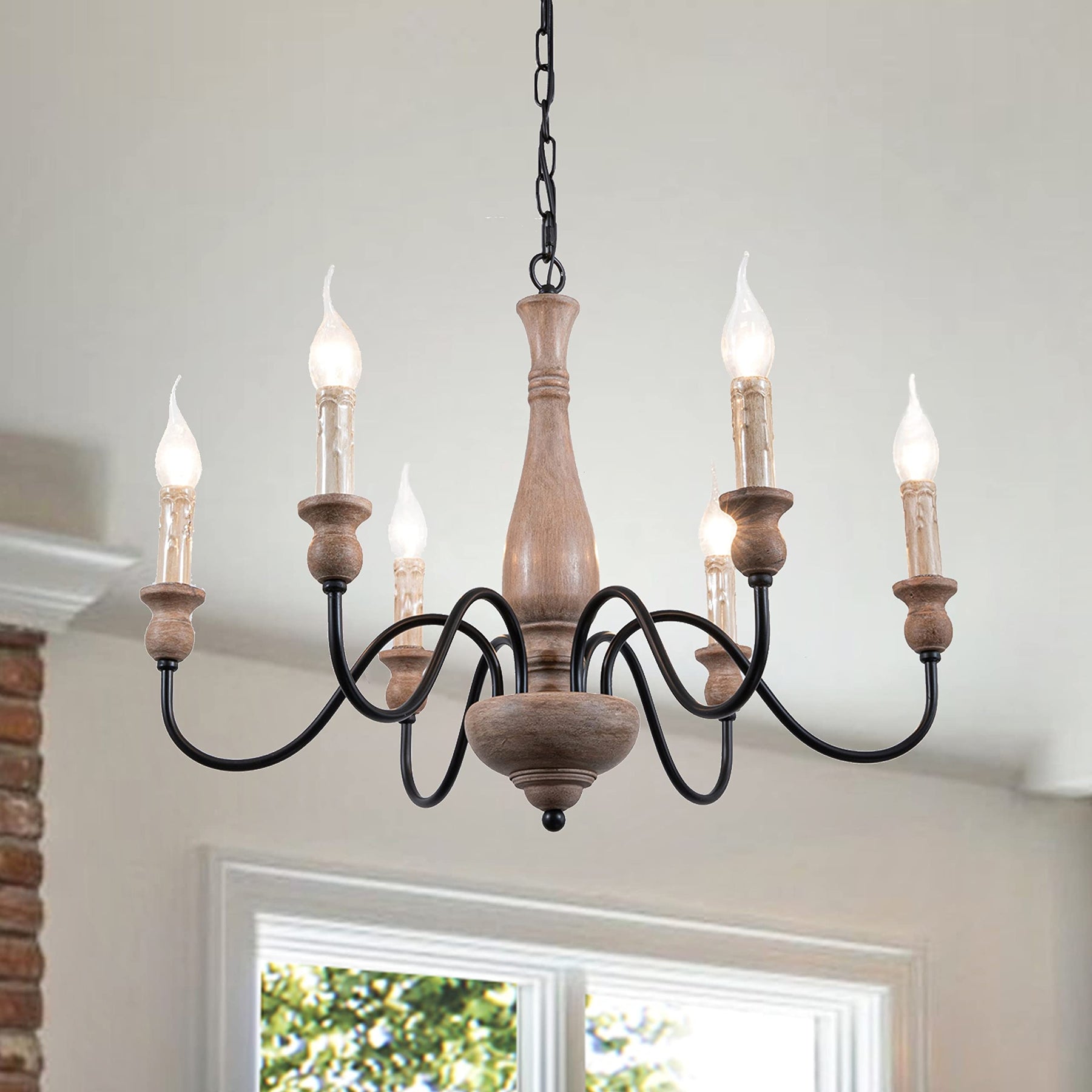 Farmhouse Chandelier French Country for Dining Room 6-light Brown Industrial