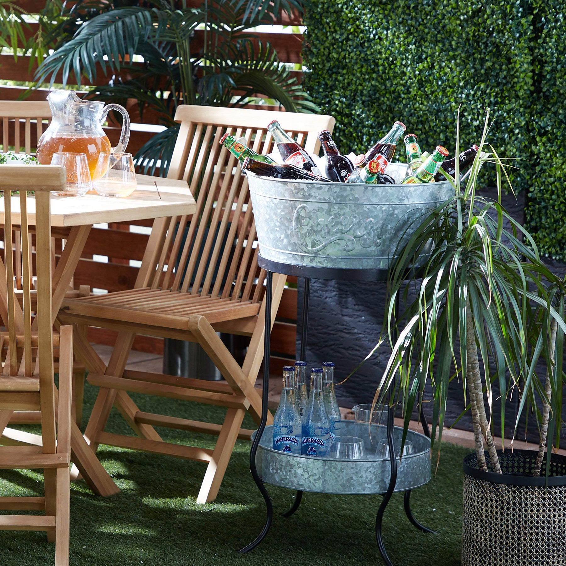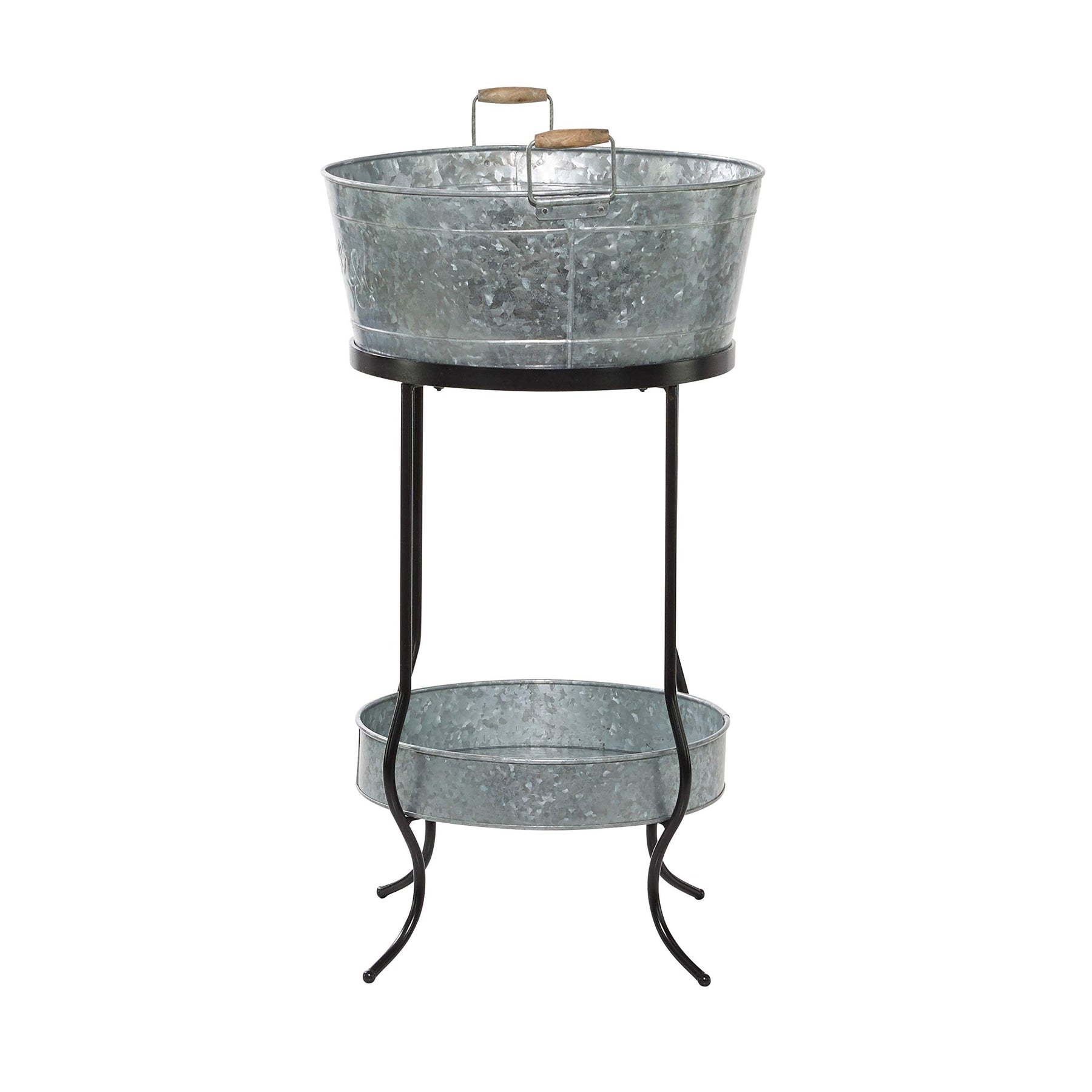 Farmhouse Style Drink Bucket Galvanized Metal-look 2-tiers Silver 19 X 34round Multi Color Metal | Made in India. This wine cooler has two tiers. Lower tier can serve as tray. Material : Metal. Type : Floor. Assembly : Assembled | Product Size: are 19"L X 9"W X 34"H.