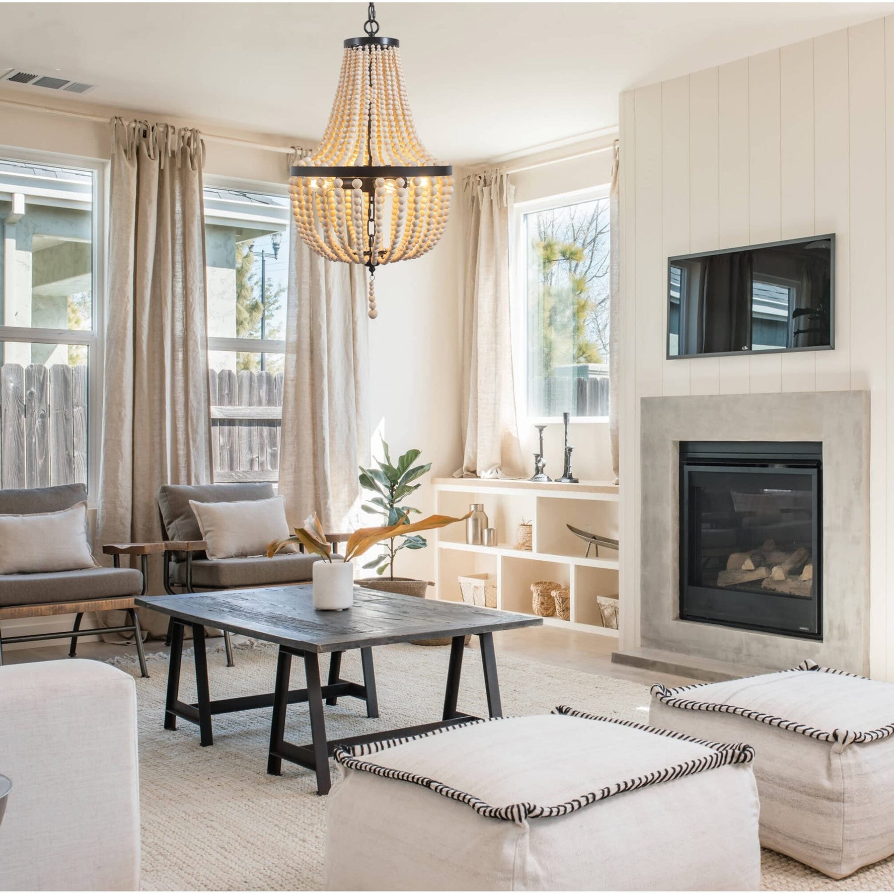 Farmhouse Wood Beaded Chandelier Modern Light Black Bohemian Eclectic Metal