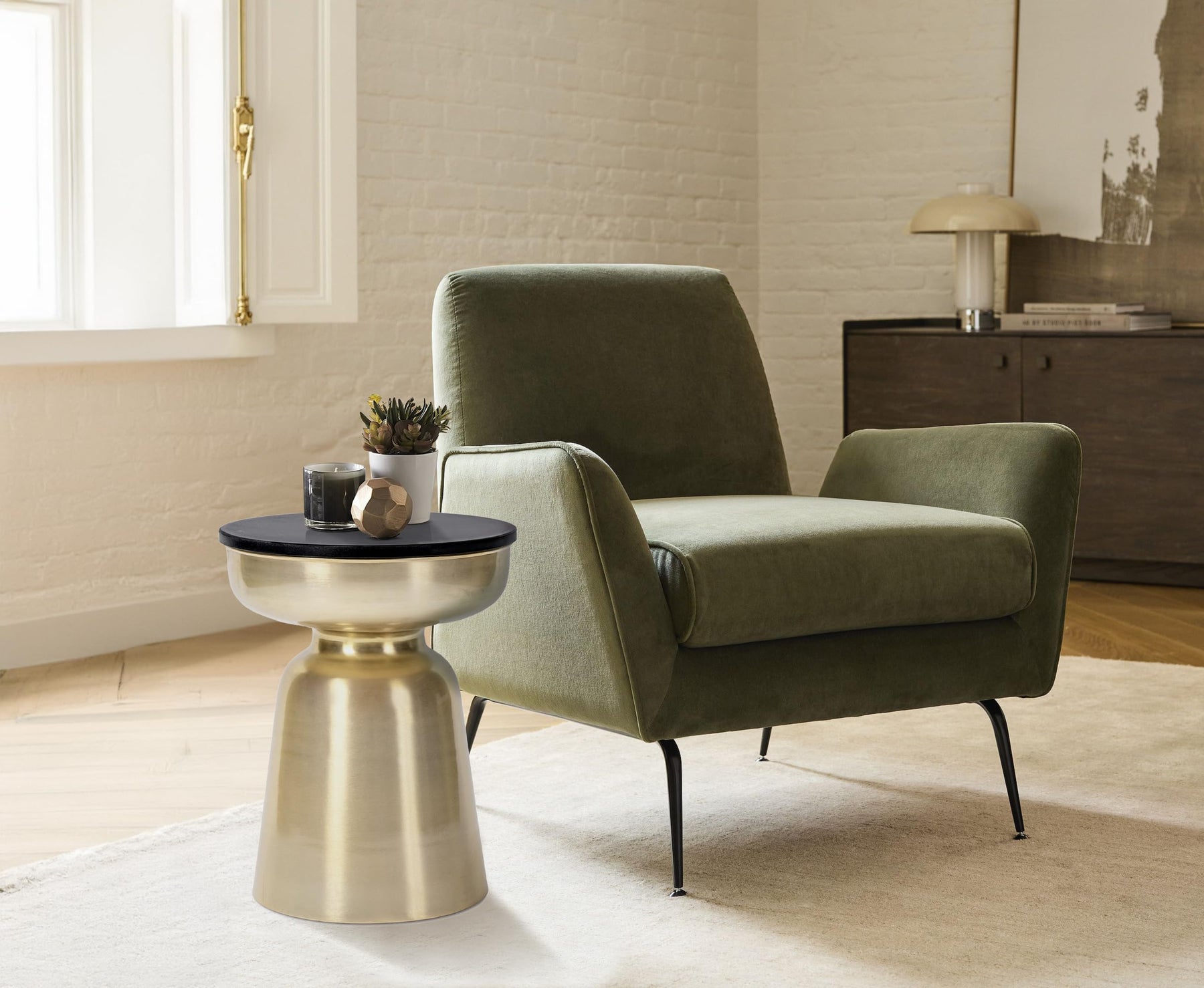 LIVING ROOM SIDE TABLE: Antiqued brass metal pedestal base for a unique look | HIGH END FINISHES: Solid black granite stone tabletop has stunning appeal | FITS YOUR SPACE: Mid-century styling works with nearly all types of decor | MODERN DESIGN: Contemporary modern design shows quality work | SHINE AND STYLE: This brass metal table is one you will be proud to own | Supports up to 70 lbs