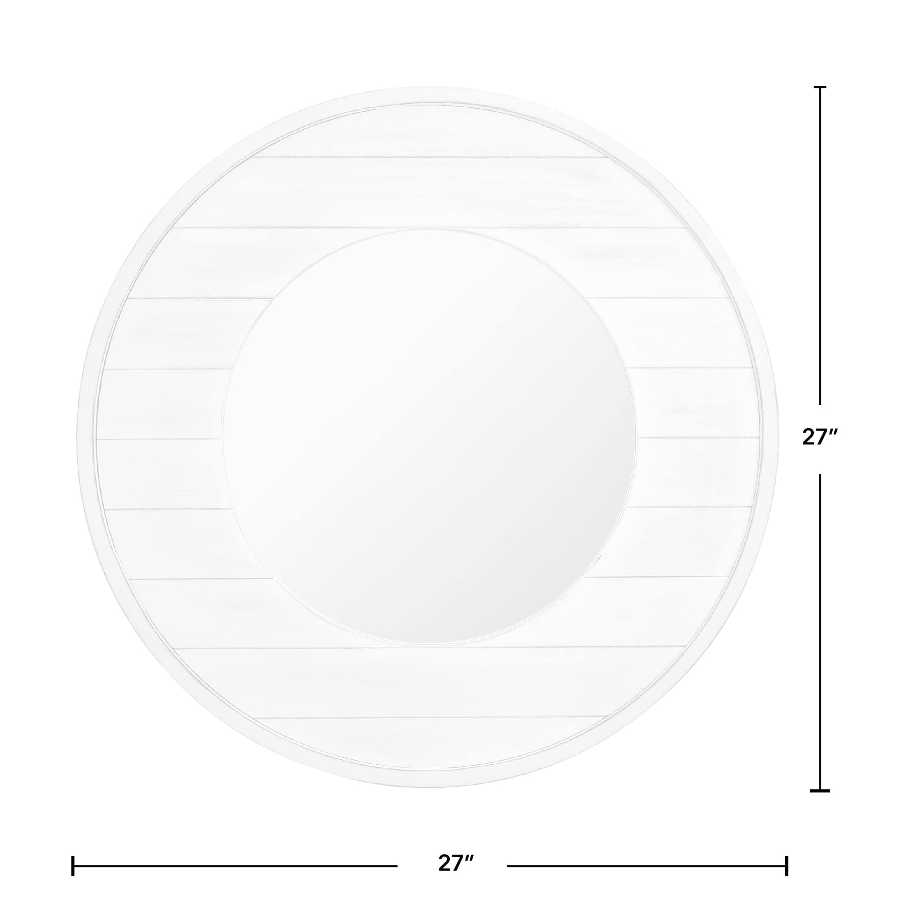 SIZE MATTERS - Our FirsTime & Co. Ellison Farmhouse Shiplap Mirror has a 27" diameter and 0.5" depth, making it the perfect size for any living space. The size of the glass alone has a 16" diameter. | IT’S IN THE DETAILS - This round mirror is crafted of solid wood with a whitewashed finish, complete with an aged plank design to give it a perfect coastal shiplap appeal. | HANG IN THERE - This mirror is designed to be hung on the wall. Hanging hardware not included. | THE PERFECT TOUCH - Our FirsTime & Co. Ellison Shiplap Mirror is a great accent piece to any coastal décor. | FARMHOUSE STYLE - Whether moving into a new home or looking for a gift, make an accent statement in your entryway, kitchen, living room or bathroom with a stylish and decorative Farmhouse and Rustic piece from FirsTime & Co.