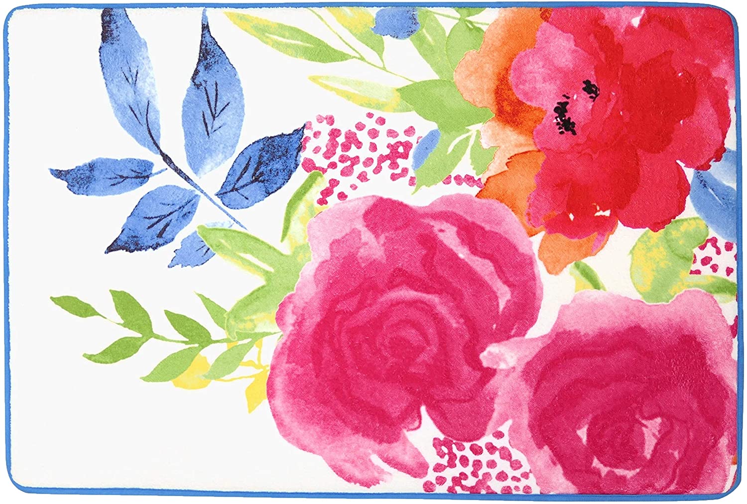 Floral Burst Bath Rug 20 X 30 White Memory Foam