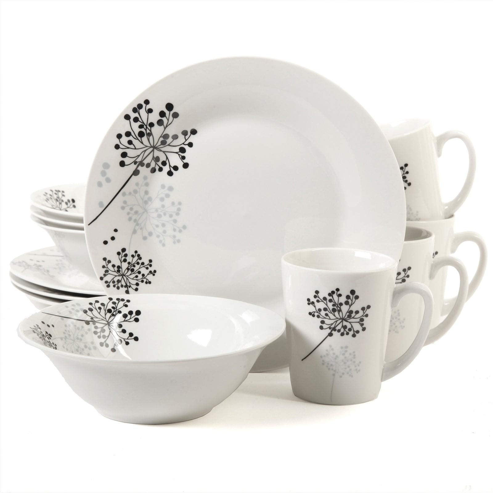 Floral Touch 12 Piece Dinnerware Set White Casual Round Stoneware
