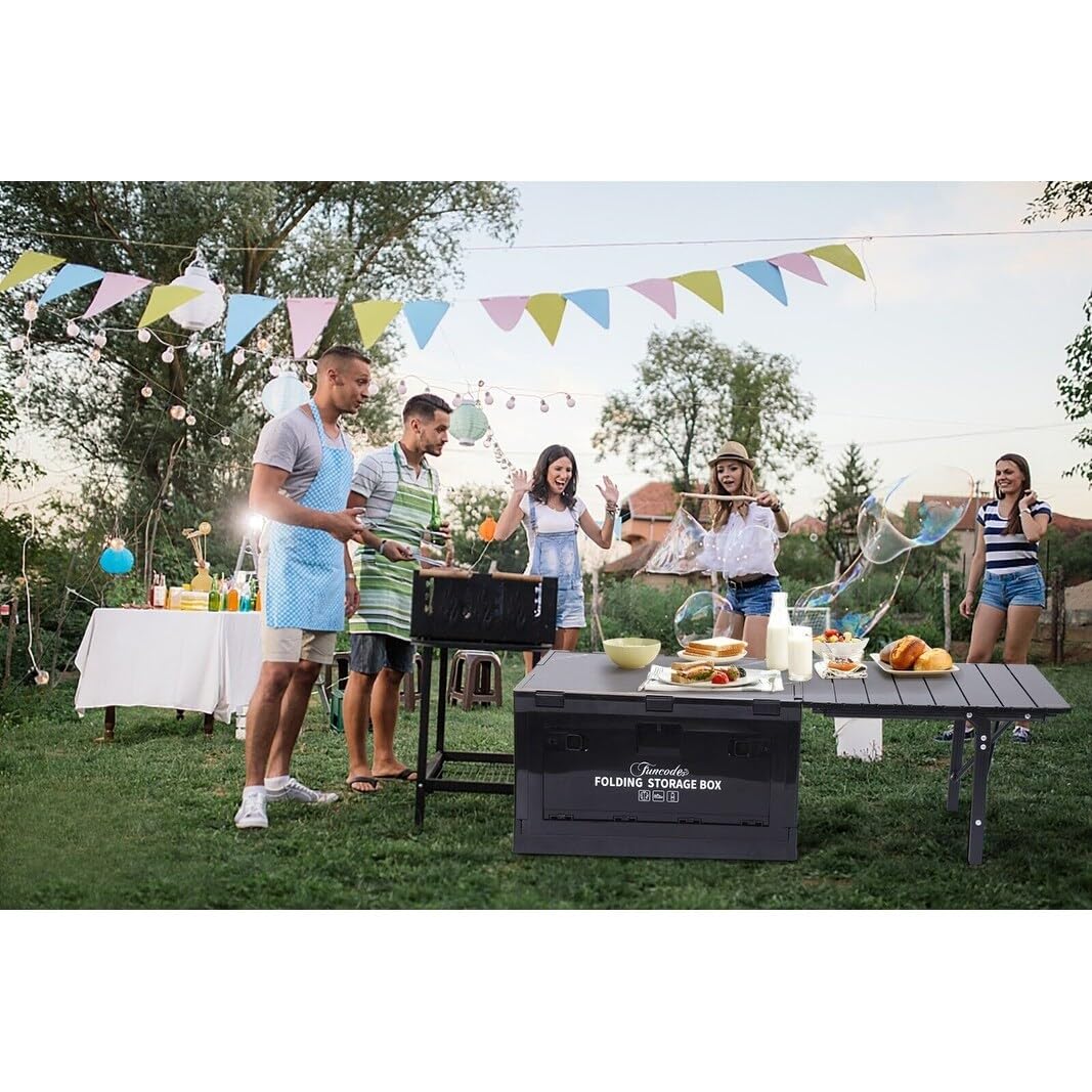 Folding Table Storage Bin With Collapsible Box Wood Lid And