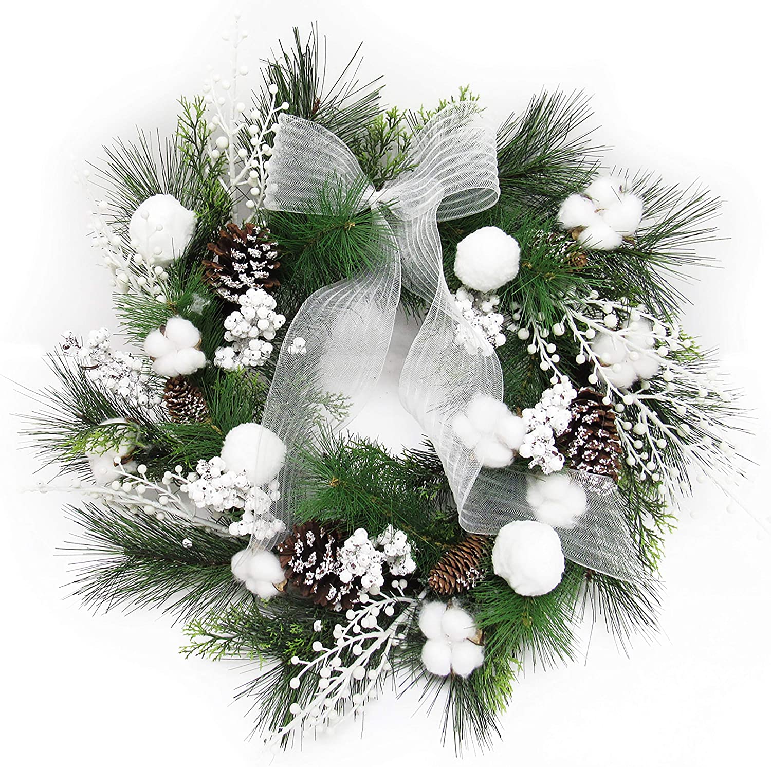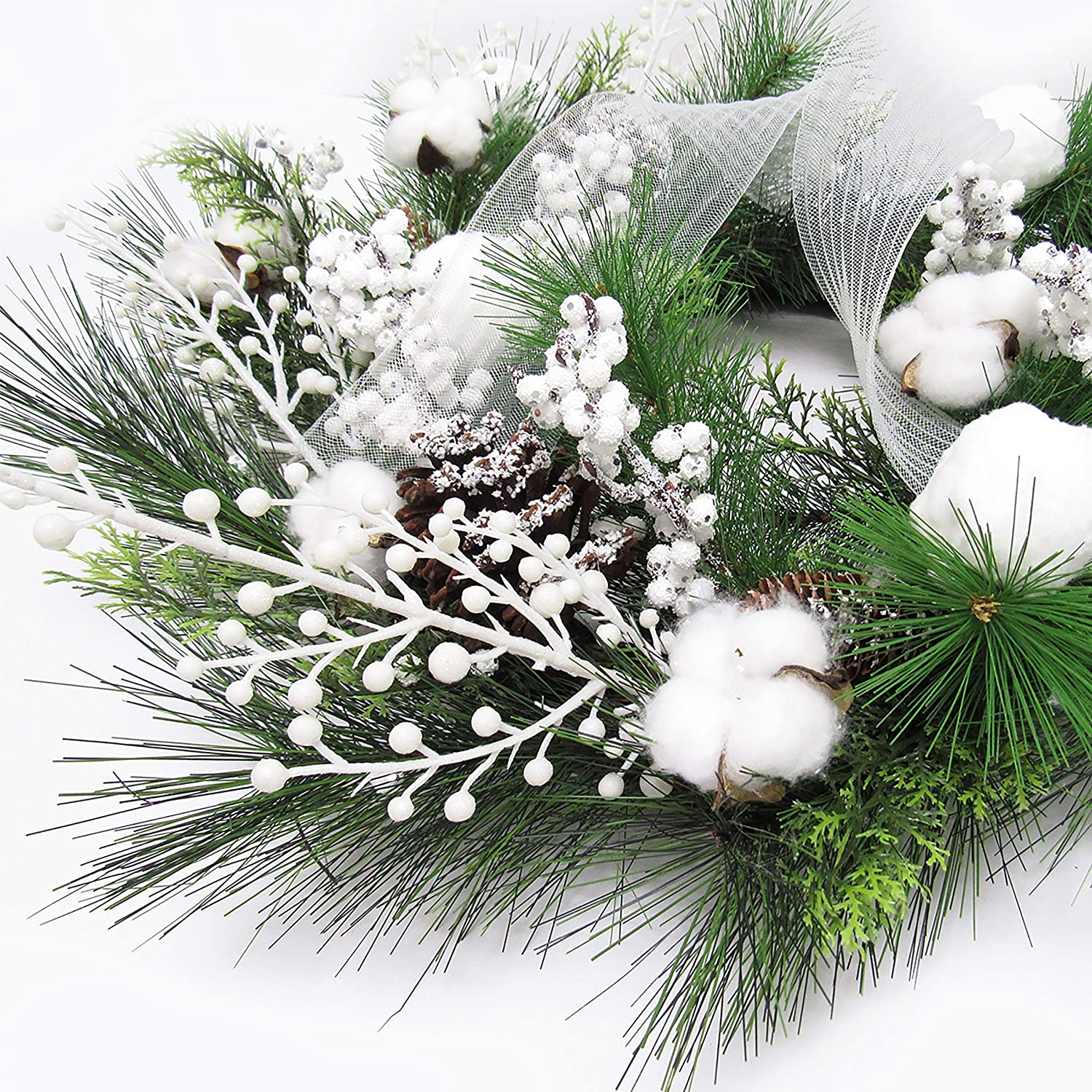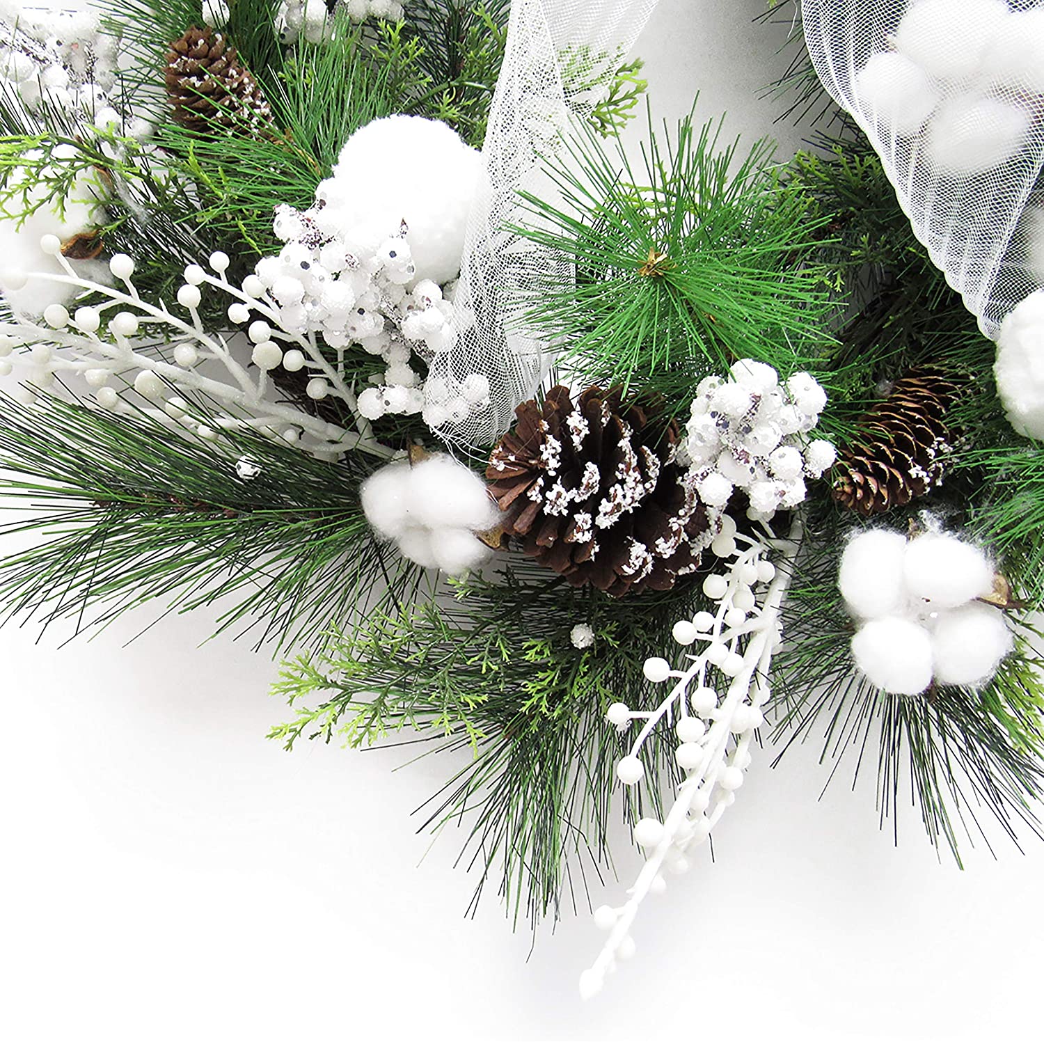 Frosty Cotton Berry Pine Cone Wreath 24in White 24" L