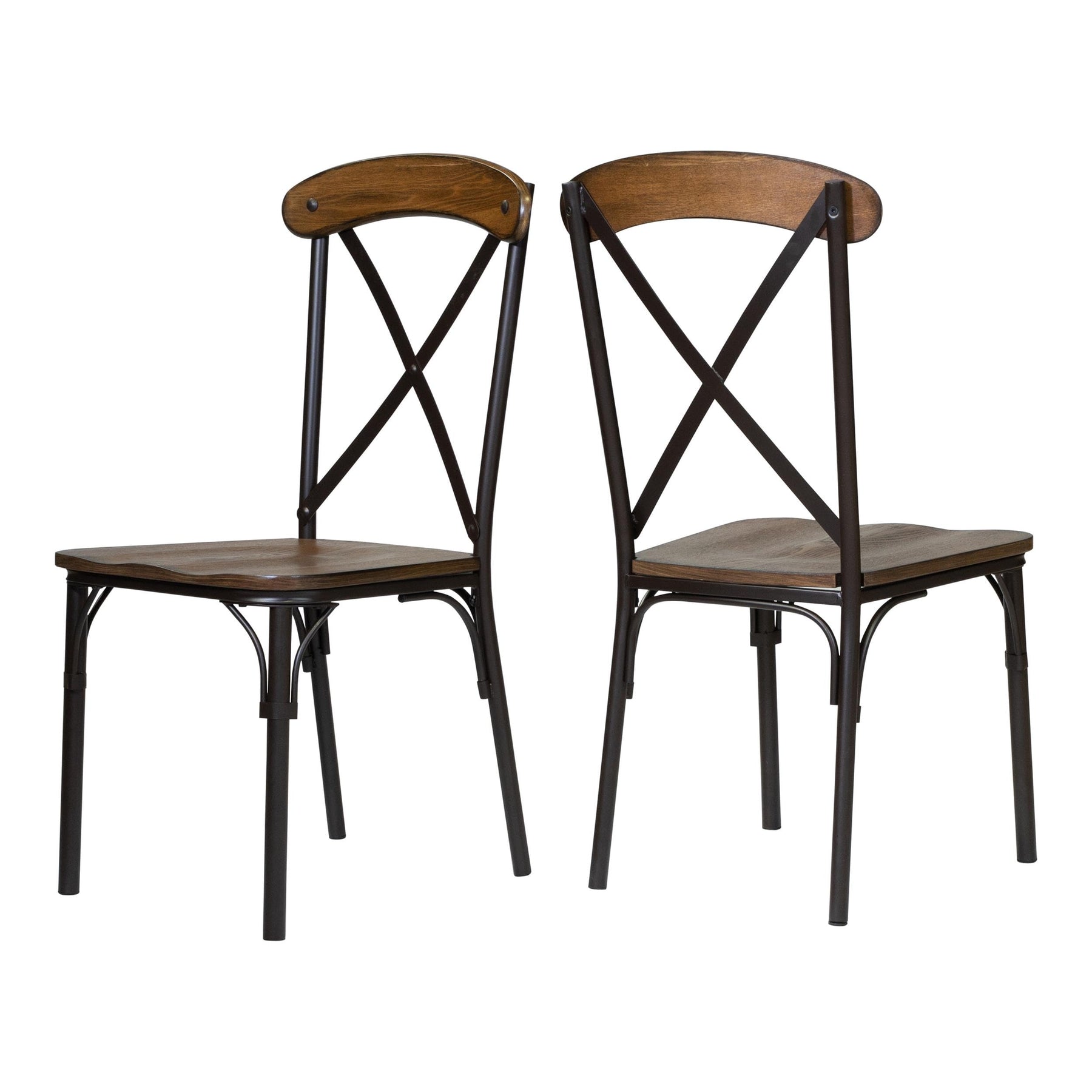 Furniture of America Rizal Industrial Metal Cross-Back Side Chair Set of 2 for Dining Room Kitchen Brown
