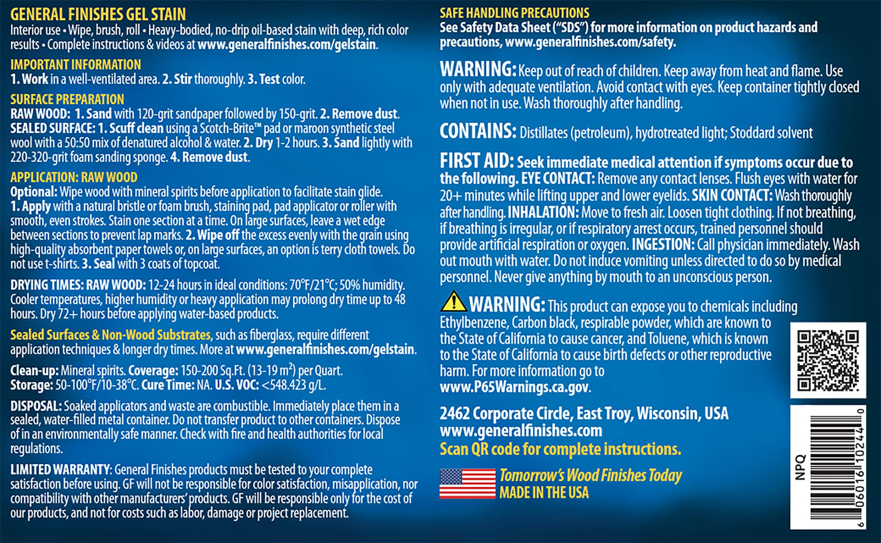These oil-based Gel Topcoats and Stains are quite possibly the easiest of all finishes to use and achieve a "hand-rubbed" look without all the work. Application is easy with a foam brush or lint free cloth. The heavy bodied gel formulation permits the product to flow out evenly (no drips or runs) preventing uneven penetration for consistent color control. Combined with no sanding (your choice to sand or not) between coats and a quick "re-coat” time, you’ll be finished sooner with less effort and better results than ever before.