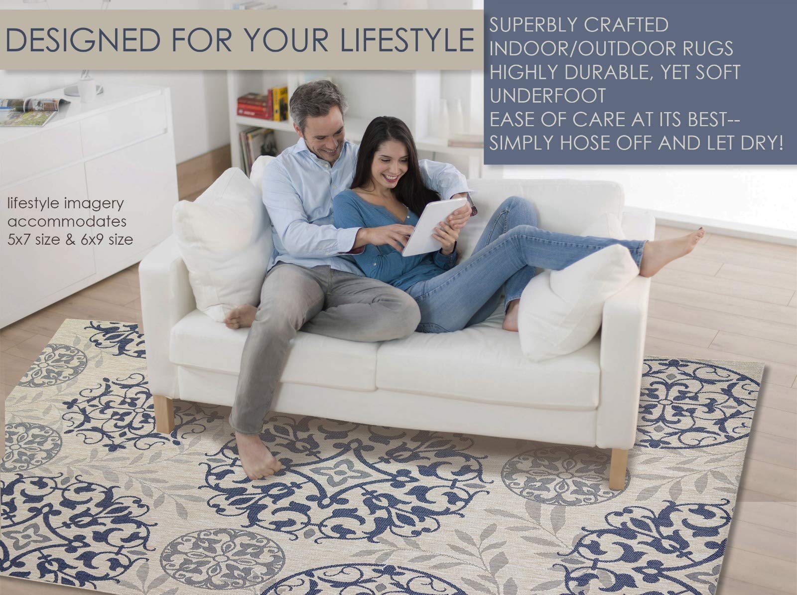 Gertmenian Indoor Outdoor Classic Flatweave Area Rug Stain & UV