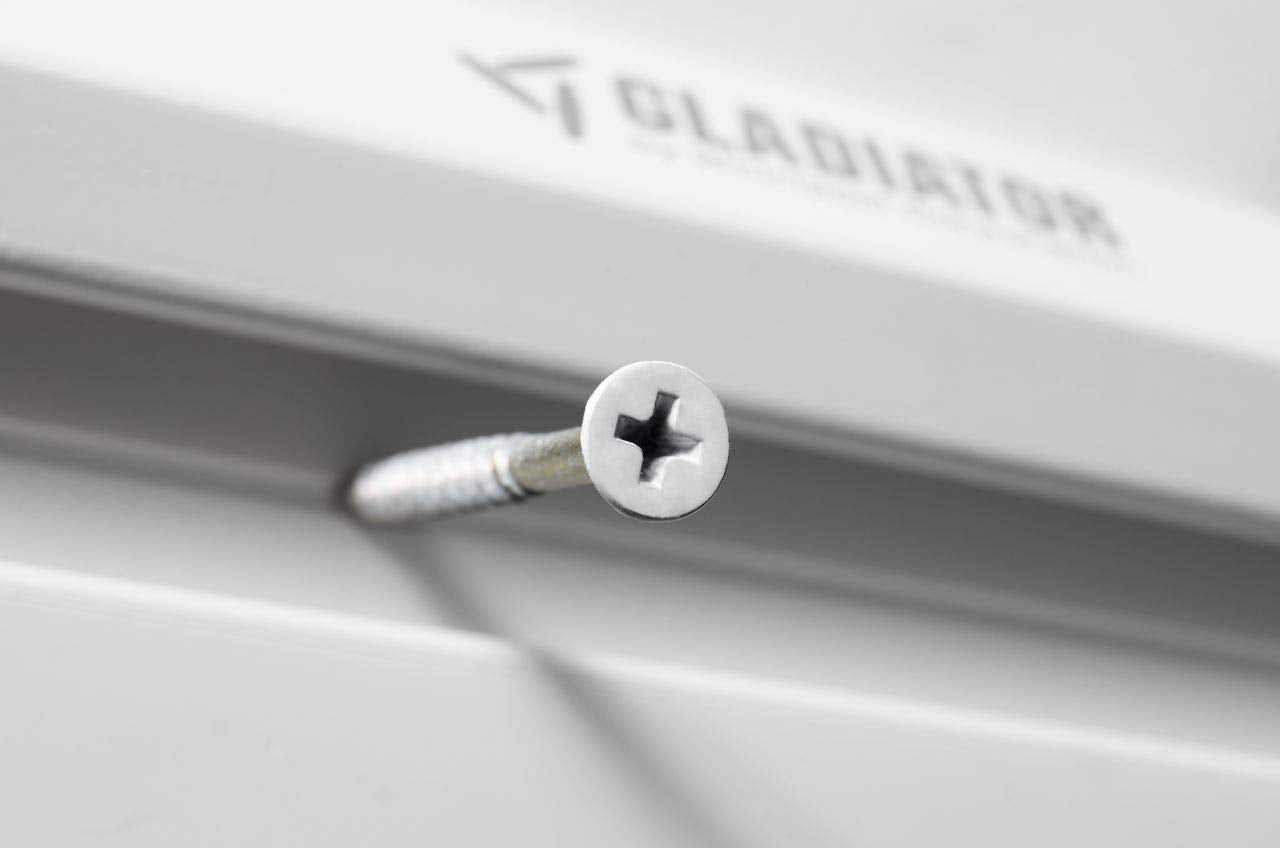 Mount in drywall on wood studs or directly to bare wood studs | Heavy-duty screws can be used on both covered and uncovered walls | One 32-pack of Gladiator Color matched screws will mount one 8 ft. Gear wall panel or four 4 ft. Gear track channels | Included components: driver