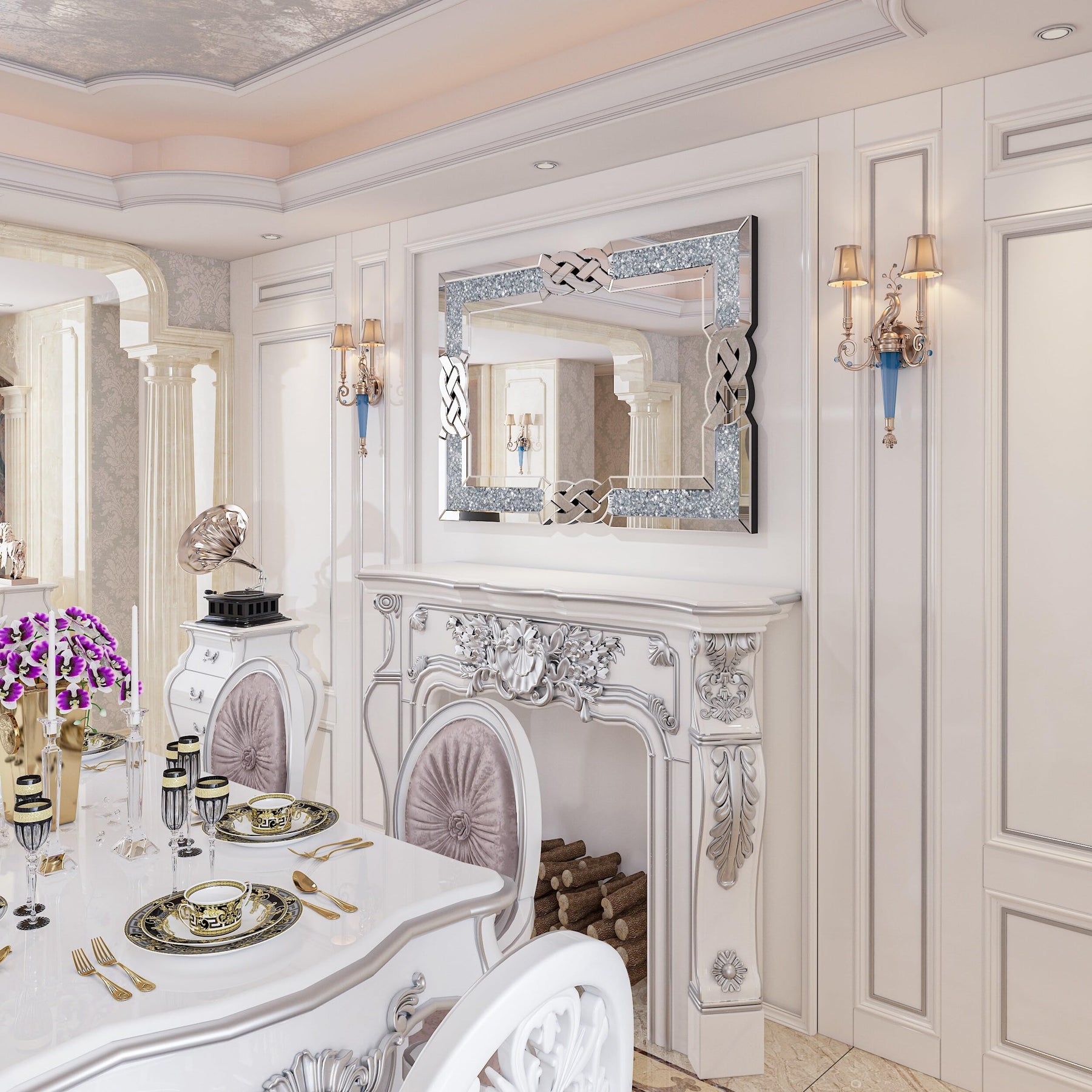 Glam Accent Diamond Mirror 36"x24" Silver Modern Contemporary Frameless