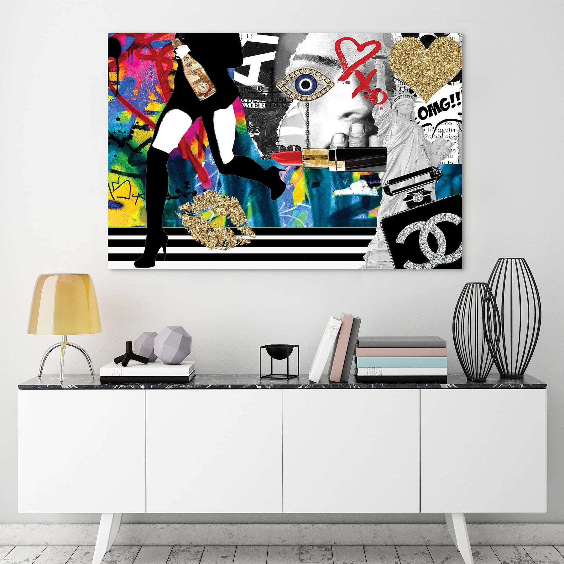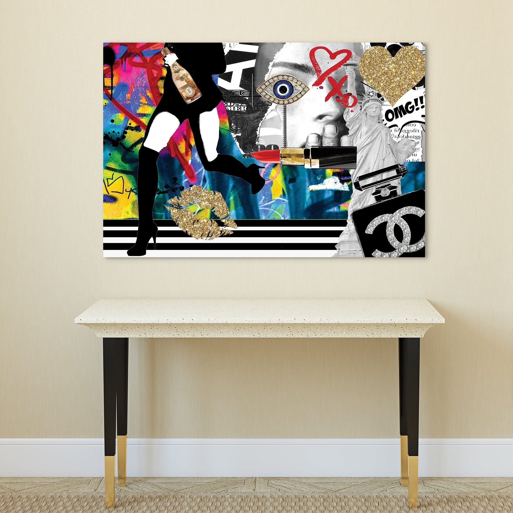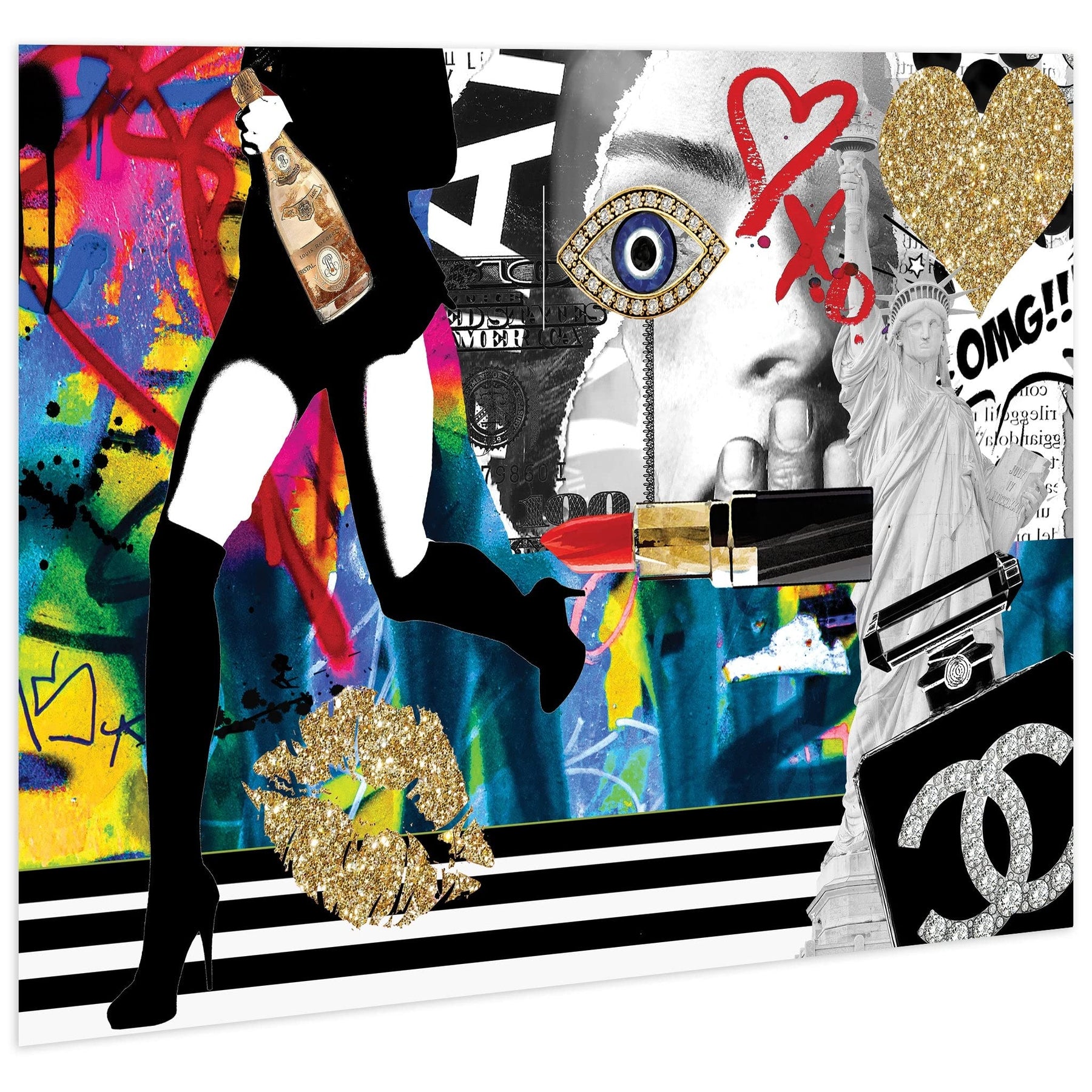 Glamour Running Women Frameless Free Floating Tempered Glass Fashion Panel