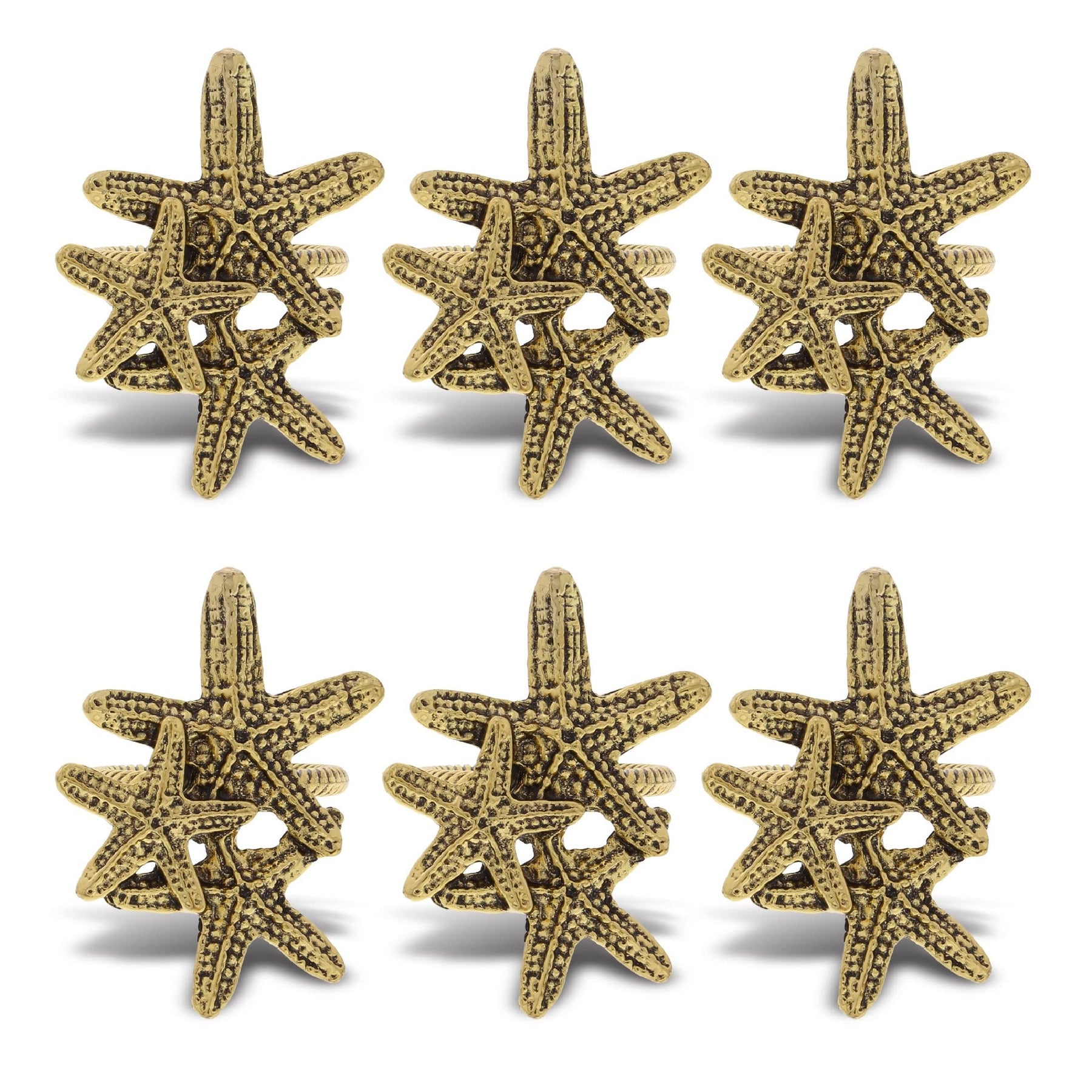 Gold Napkin Rings Set of 6 Table Setting Centerpiece 2.5 X 1.75 Inches Nautical Coastal Metal