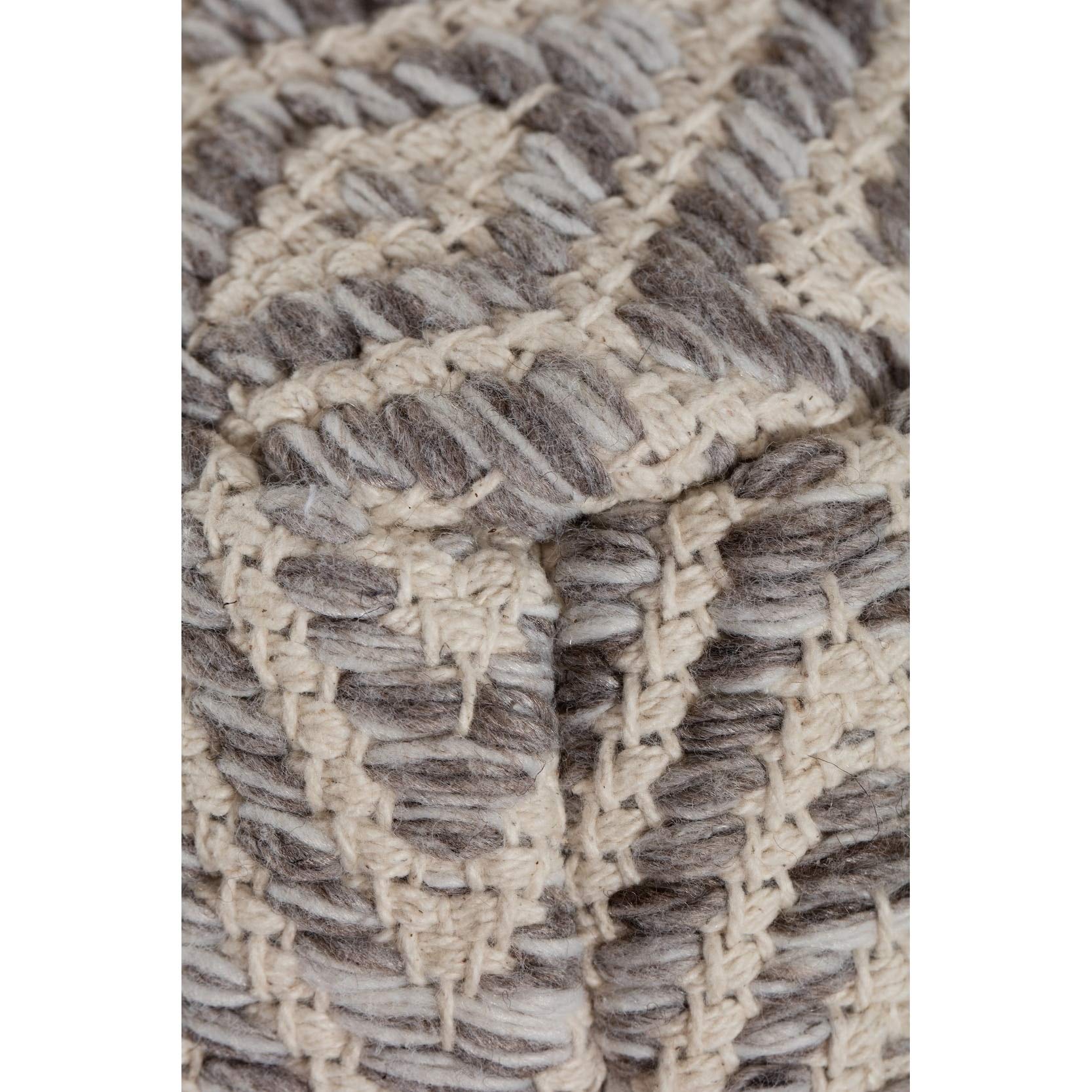 Gray 22-inch Square Pouf Grey Bohemian Eclectic Modern Contemporary Pattern Cotton Polyester | Material Info: 55% Cotton, 45% Polyester. Construction: Woven. Easy and durable complement to any seating arrangement. Soft blend of woven cotton and recylced polyester in a subtle diamond pattern. Expertly woven and hand crafted by skilled weavers, finished and filled in the United States. Extra large pouf with a firm and comfortable sit. Filled with a premium, recyclable, highly resilient (won't shrink) expanded polypropylene bead. Design/Look: Bohemian & Eclectic, Modern & Contemporary | Product Size: 22 inches wide x 22 inches long x 17 inches high. Blot liquid spills immediately by pressing a clean, undyed cloth into the spill to absorb as much as possible. You may spot-clean using a solution of mild dish soap and water but test the solution in a small, inconspicuous area of the pouf to be sure there is no discoloration. If a piece of yarn becomes exposed, don't pull, clip with a sharp scissors. Material Info: Cotton, Polyester. Print : Pattern.