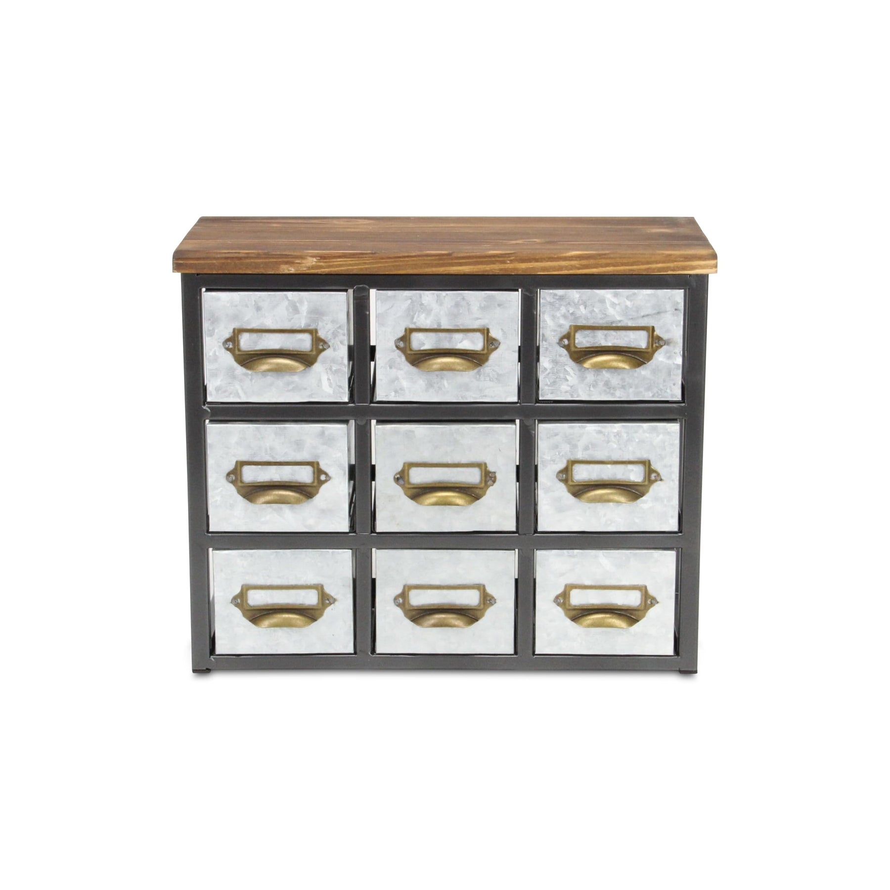 Gray Galvanized Metal Short 9 Drawer Desk Organizer Grey Industrial