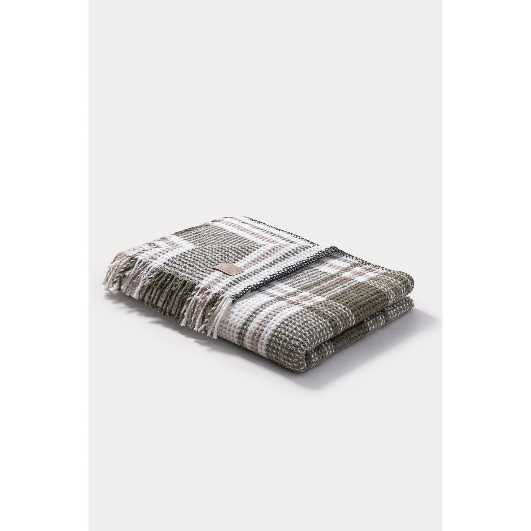Greenly Throw Green Geometric Casual Cotton | A cotton throw made in Turkey is a versatile and elegant home textile designed for both comfort and style. It is typically crafted using high-quality, cotton combination fibers that are known for their softness, breathability, and durability. Its rectangular shape provides versatility, whether draped over a sofa, spread across a bed, or used as a decorative throw for a chair. The fabric is woven with precision and attention to detail, resulting in a smooth and luxurious texture. | This particular cotton throw measures 57 inches by 76 inches, offering a generous size that can comfortably cover a person or be used as an accent piece for your furniture. This particular cotton throw measures 57 inches by 76 inches, offering a generous size that can comfortably cover a person or be used as an accent piece for your furniture. The colors chosen for the throw are likely to be sophisticated and refined, reflecting the brand's commitment to timeless style.