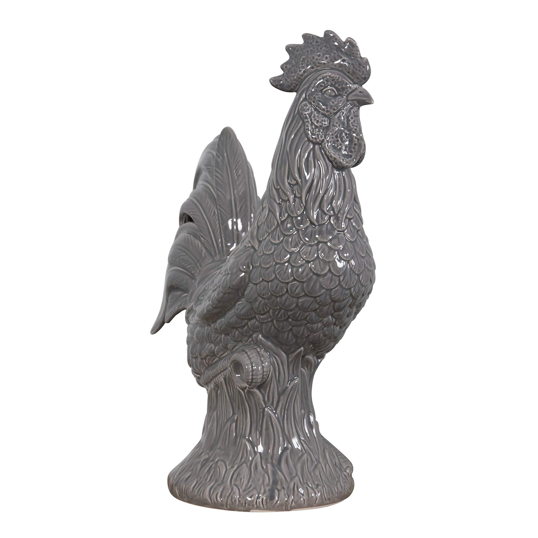 Grey Rooster Statue Animals Ceramic | Artistically crafted design using fine ceramic. Dry Location - This fixture is rated for dry locations, meaning it can be used in an indoor area that is not normally subject to dampness. Base finish: Grey. Base Material Info: Ceramic. Material Info: Ceramic. Type : Statues. Pattern : Animals. Color : Grey. Dimensions : 12.2 In. X 6.1 In. X 15.4 In | Product Size: 15.4 inches high x 6.1 inches wide x 12.2 inches deep.