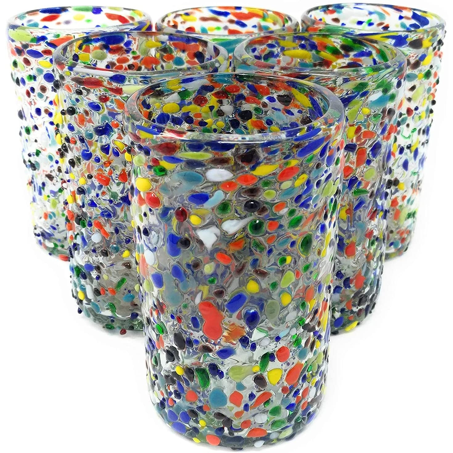Hand Blown Mexican Drinking Glasses Set Of 6 Confetti Rock Design (14 Oz Each) Multi Color Glass | HANDMADE - Each Mexican blown glass is handmade by skilled artisans using techniques handed down from generation to generation. TRADITION - These traditional blown drinking glasses showcase iconic Mexican style. UNIQUE - Beautiful confetti rock design (textured). Each glass is artisan handmade and may vary slightly in size, color and design. Material : Glass. Type : Iced Beverage. Set size : Set of 6. Care instruction : Dishwasher Safe Top Rack Only | SIZE - Each blown glass is approximately 5.1 inches tall and 3.15 inches in diameter. Each glass holds 14 fluid ounces. Product Size: 3.2 In. L X 3.2 In. W X 5.1 In.