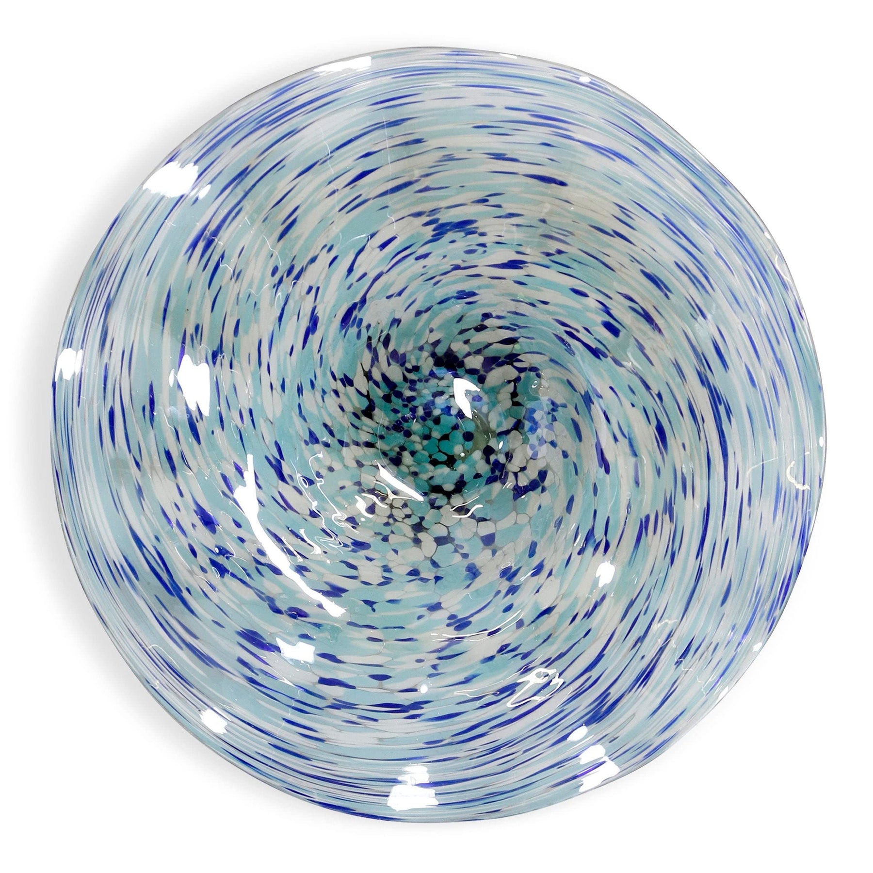 Hand Blown Swirling Seas Glass Platter Multicolored Finish Of Blues And White - Diamond Home USA