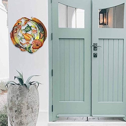 Handmade 24 inch Painted Two Leaping Fish Metal Wall Art