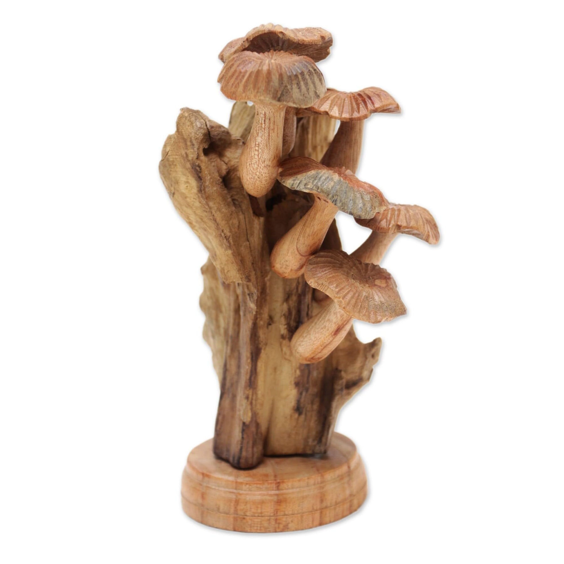 Handmade Mushroom Path Wood Sculpture Brown Antique