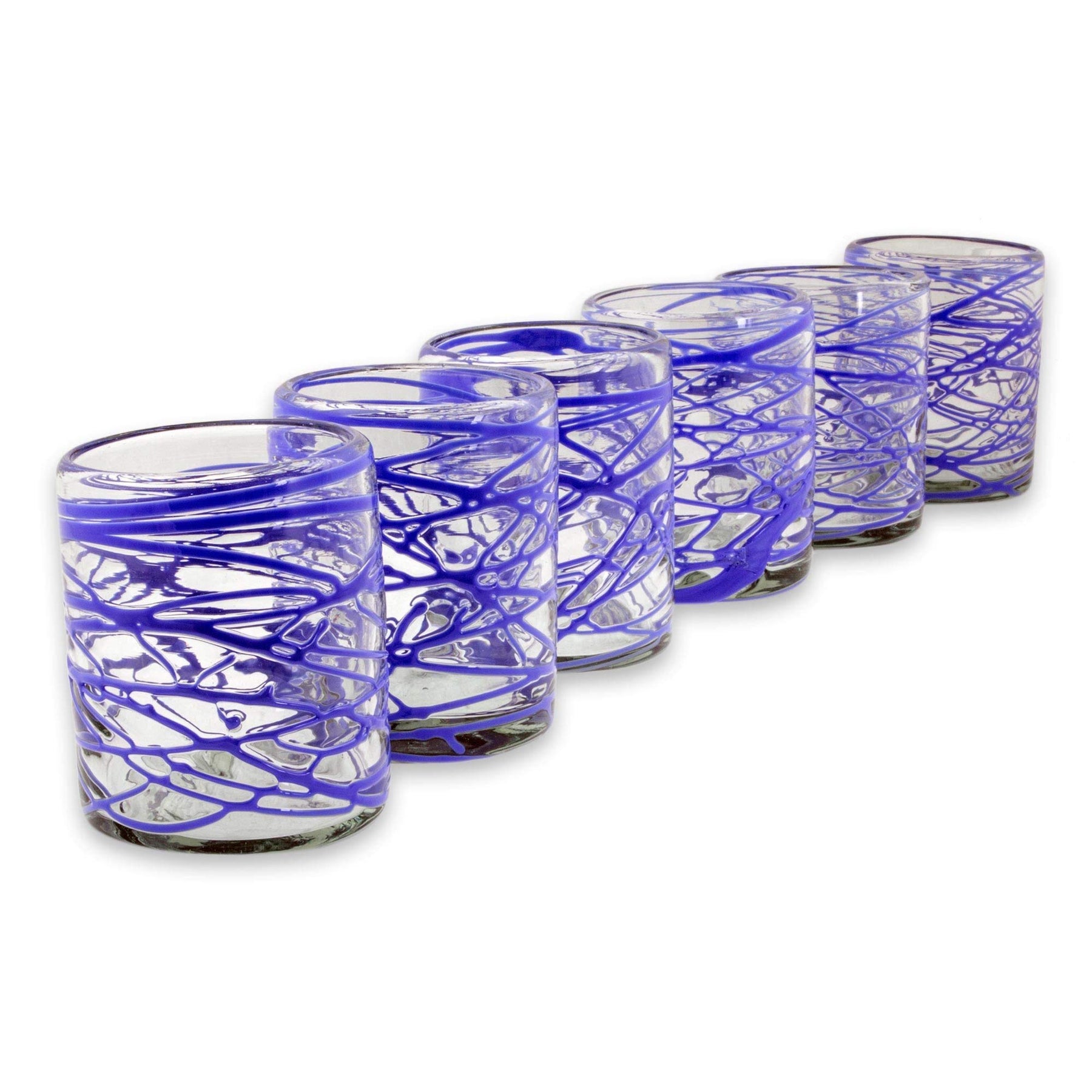 Handmade Set Of 6 Blown Glass Rock Glasses 'Sapphire Swirl'
