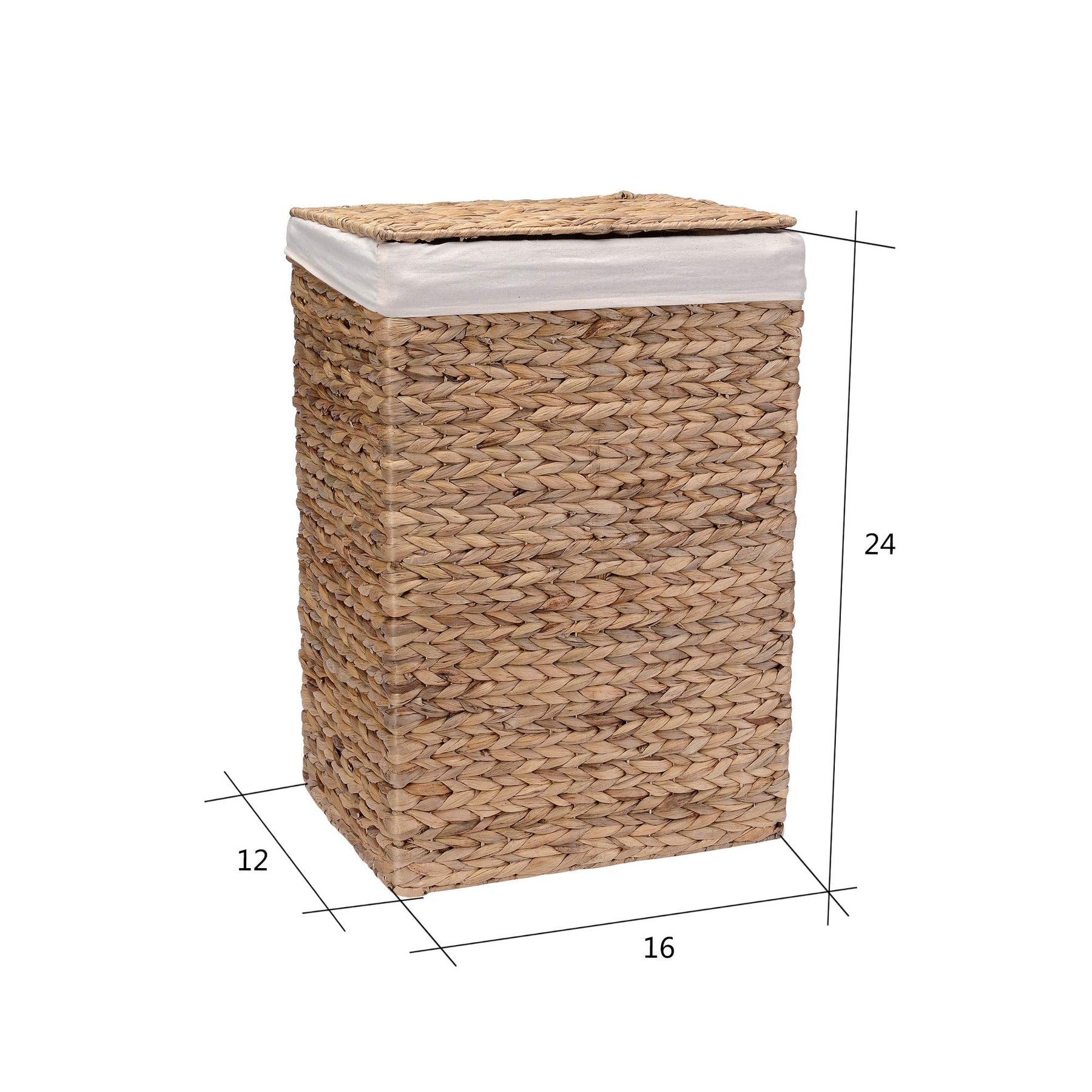 SET OF 2 HAMPERS FOR LAUNDRY - Each set of two laundry bins includes a large 18-inch storage basket and a 16-inch medium basket that conveniently nest inside one another to save you space. Ideal for use in bedrooms, laundry rooms, or bathrooms. | LARGE STORAGE CAPACITY - Both wicker hampers have a large enough interior to hold up to 6.5-cubic-feet of clothes, making laundry day a breeze. In between washing days, these clothes hampers with lids keep your dirty clothes tidy and out of sight. | CONVENIENT AND PORTABLE - The laundry baskets have reinforced wire handles on each side, allowing you to move the bins from room to room with ease. The quick open lids offer easy access to put your clothes in the basket for transport to the laundromat. | BUILT TO LAST - These handmade clothes hampers for laundry are made of durable seagrass water hyacinth for long-lasting use in sorting and organizing your laundry. When soiled, both wicker laundry hampers have a removable liner for machine washing. | PRODUCT DETAILS - Materials: Water Hyacinth. Dimensions: Large Basket: (L) 18" x (W) 14" x (H) 26"; Medium Basket: (L) 16" x (W) 12" x (H) 24". No Assembly Required. Color: Natural.
