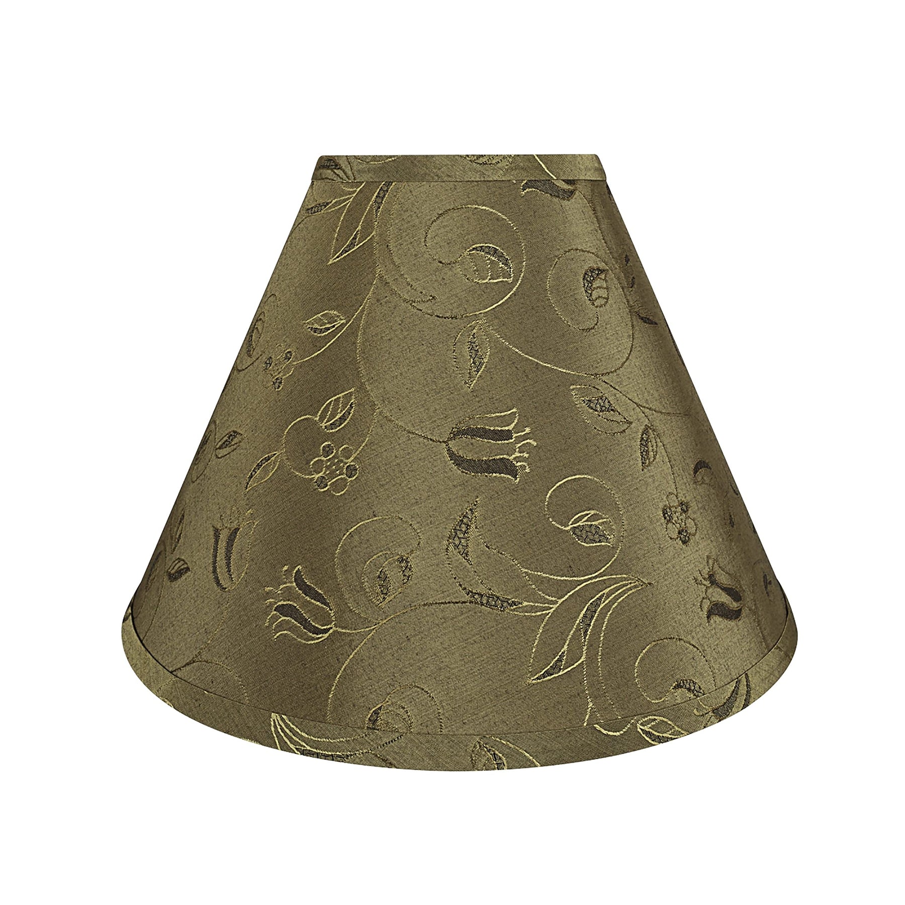Hardback Empire Uno Lamp Shade Goldish Brown Transitional | 1 Pack transitional UNO hardback empire replacement lamp shade. Jacquard fabric in goldish brown with floral design. UNO lampshades fit E26 Phenolic sockets (socket rings not included) | UNO Fitter Ring Inner Diameter: 33mm. Applications - For Table Lamps, Accent lamps, Vintage Lamps, Candle Stick lamps and Kid's Room Lamps. Design/Look : Transitional. Shade material : Fabric. Color : Brown. Shade height : 7 to 12 Inches. Shade width : Under 6 Inches. Product Size: 13.0 In. L X 5.0 In. W X 9.5 | Lamp Shade Product Size: 5" Top x 13" bottom x 9-1/2" slant height. Our hardback shades use Virgin Styrene backing board to produce a warm, natural & smooth light - more appealing than shades made with recycled Styrene board that can crack & yellow over time.