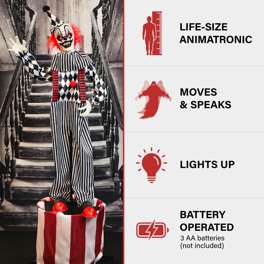 Haunted Hill Farm Animatronic Talking Clown on a Stage with